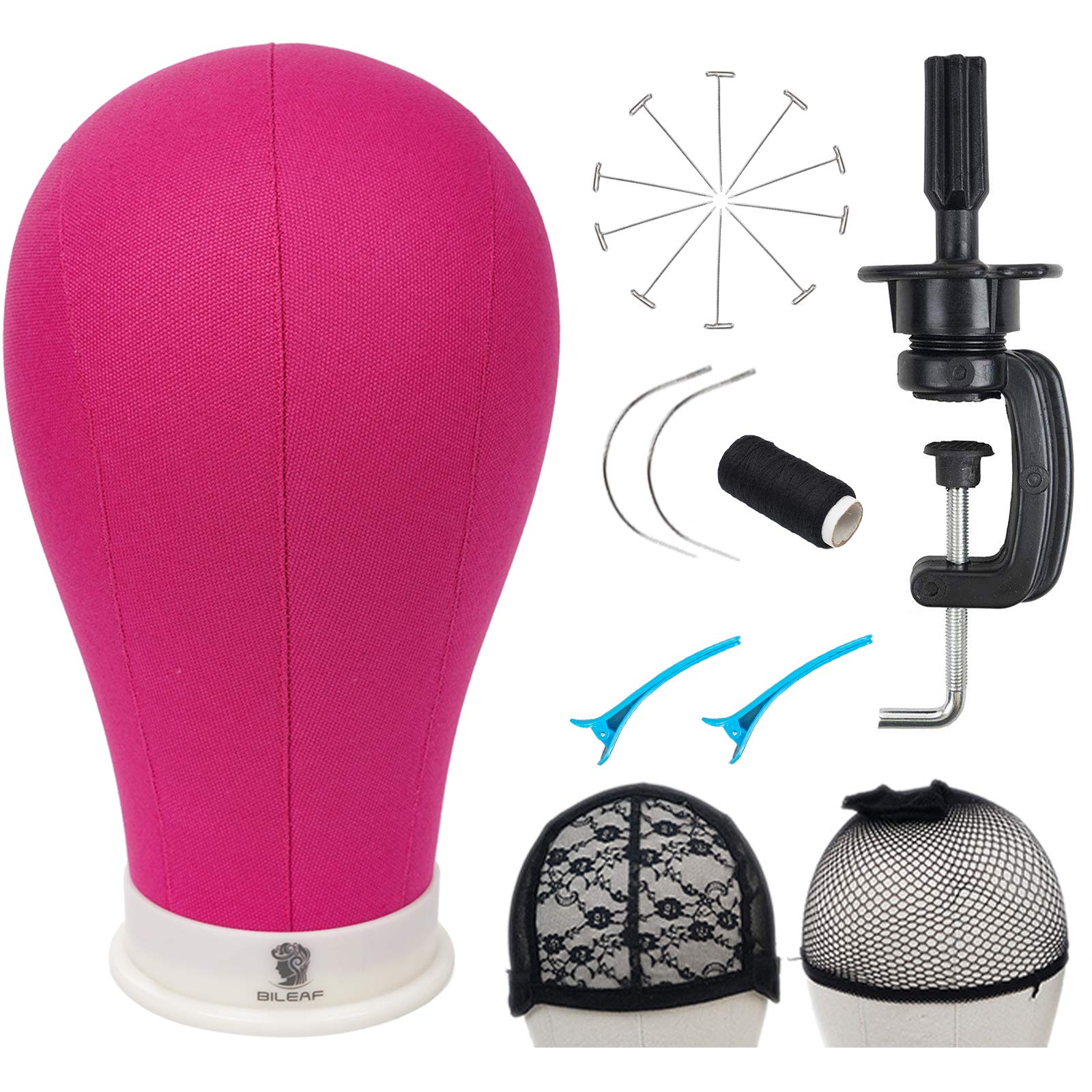 Bileaf 23 Inch Poly Canvas Block Mannequin Wig Head With Stand Colored Styling Manikin Head Set For Making Wig Display With Moun