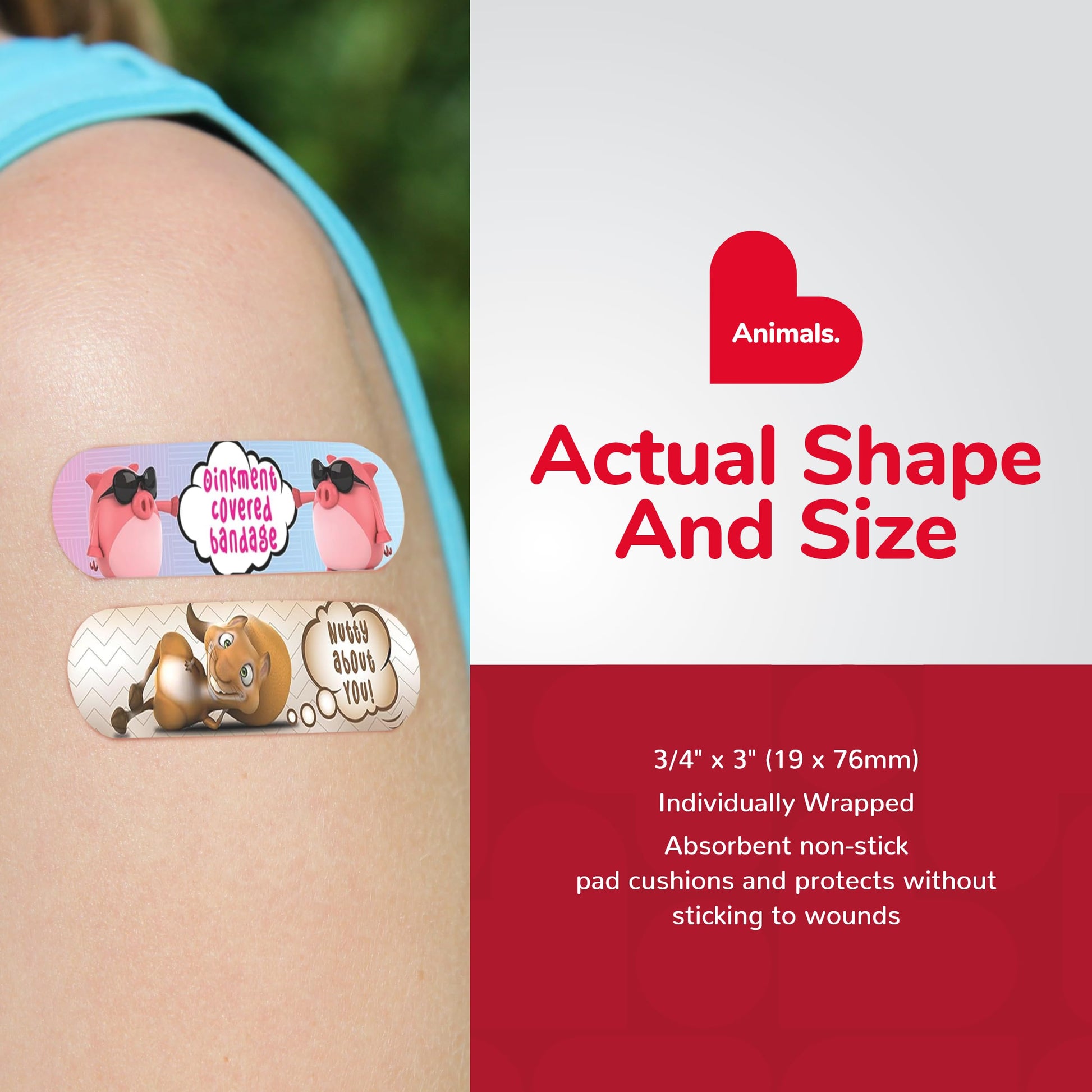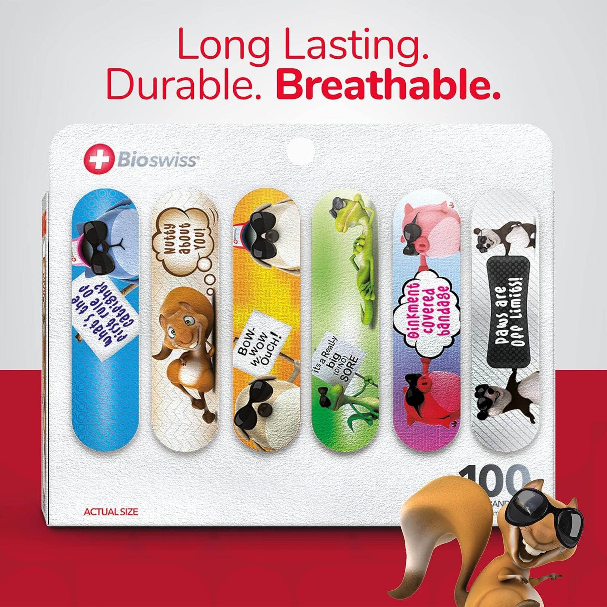 BioSwiss Bandages, Assorted Animal Shaped Variety Self Adhesive Bandage, Latex Free Sterile Wound Care for Kids and Adults, 100 Count