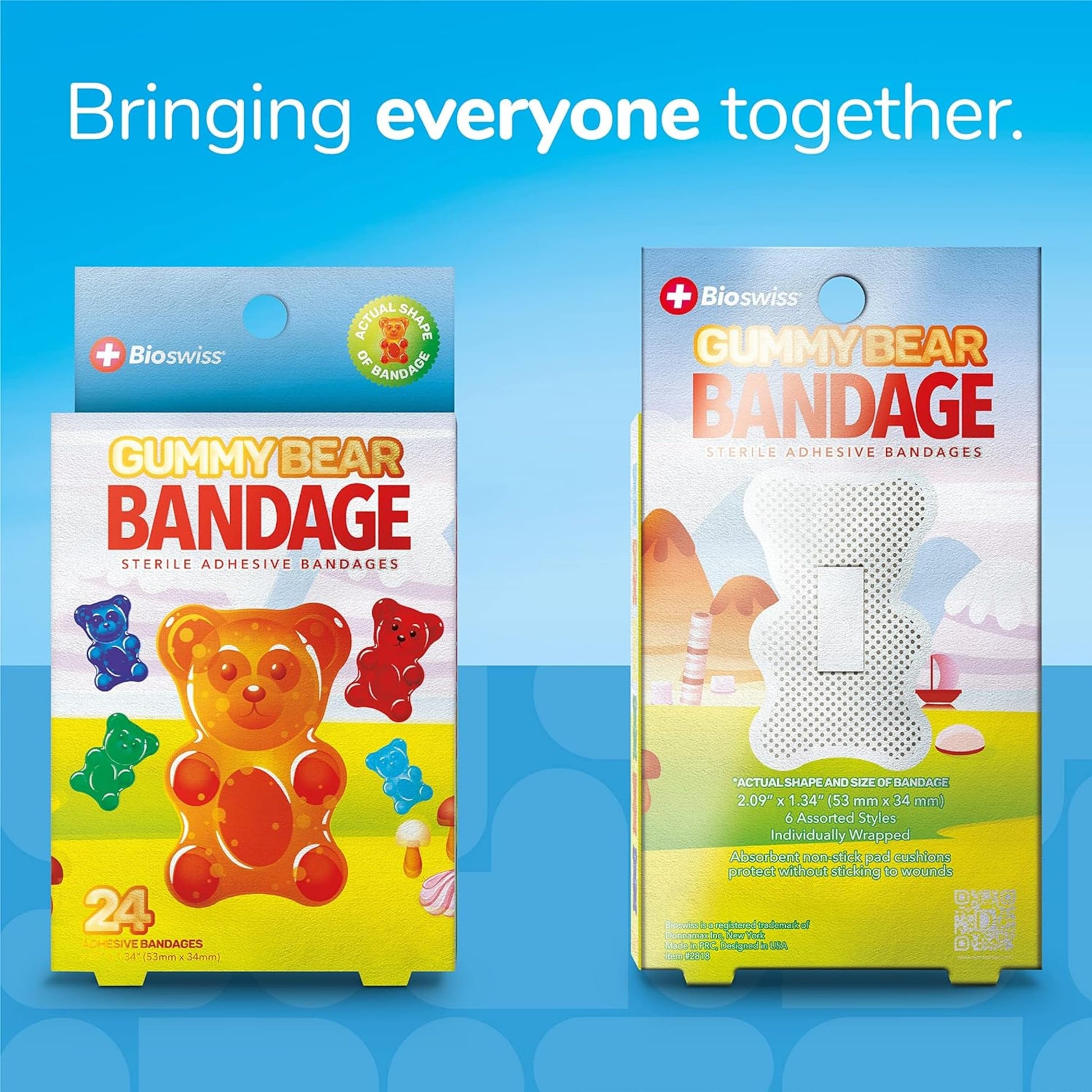 BioSwiss Bandages, Gummy Bear Shaped Self Adhesive Bandages, Latex Free Sterile Wound Care, Fun First Aid Kit Supplies for Kids, 24 Count
