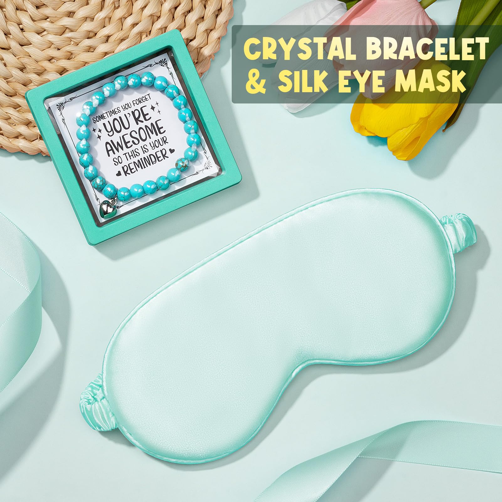 - NATURAL STONE BRACELET & CROCHET FLOWER: Made of 8mm natural turquoise stone with elastic cord measures girth 7-12 inches, suitable for most wrists. Wearing this charming bracelet can bring her lucky, wisdom & strength. With the additional card said' Sometimes You Forget You're Awesome, So This is Your Reminder', sure to inspire & appreciate her. A bunch of delicate handmade crochet flowers can touch her deeply, help create a heartwarming moment, leave her an impressive birthday memories.