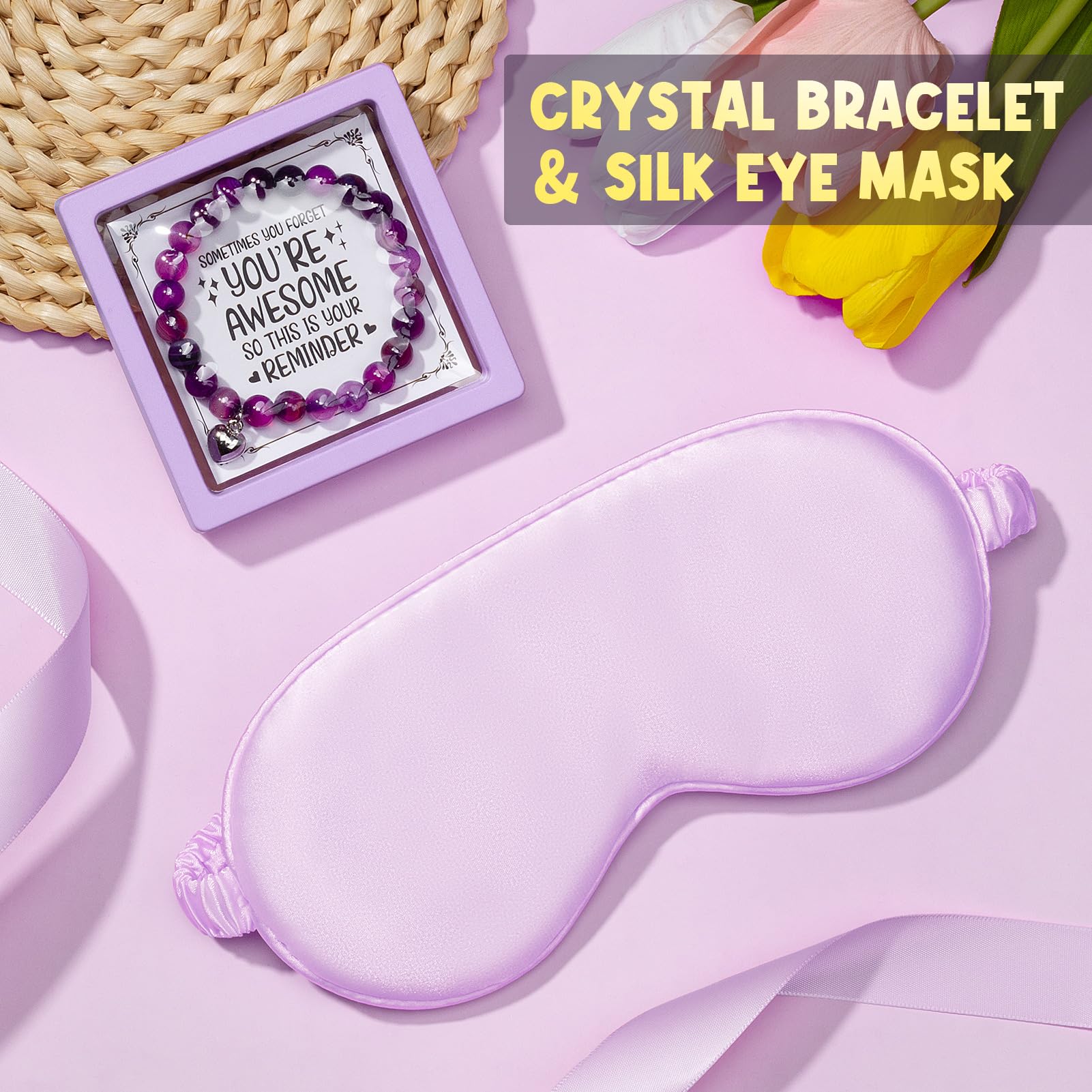 - NATURAL STONE BRACELET & CROCHET FLOWER: Made of 8mm purple agate natural stone with elastic cord measures girth 7-12 inches, suitable for most wrists. Wearing this charming bracelet can bring her lucky, wisdom & strength. With the additional card said' Sometimes You Forget You're Awesome, So This is Your Reminder', sure to inspire & appreciate her. A bunch of delicate handmade crochet flowers can touch her deeply, help create a heartwarming moment, leave her an impressive birthday memories.