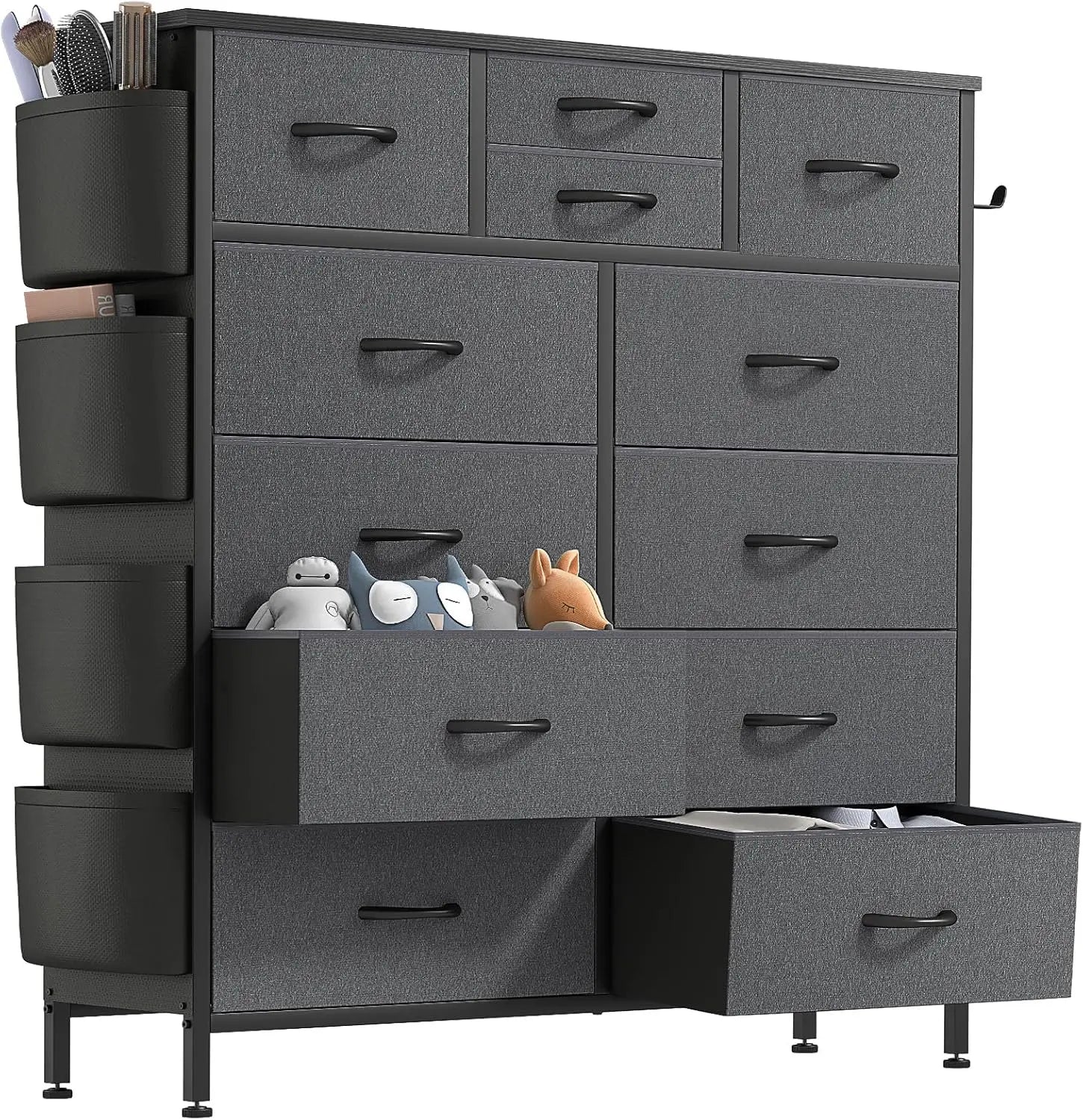 Introducing our Black 12-Drawer Dresser with Hooks, a stylish and functional addition to any bedroom. With 12 spacious drawers and convenient hooks, this dresser offers plenty of storage space for all your essentials. The sleek black finish adds a touch of elegance, while the sturdy design ensures long-lasting use. Perfect for keeping your clothes and accessories organized and easily accessible.