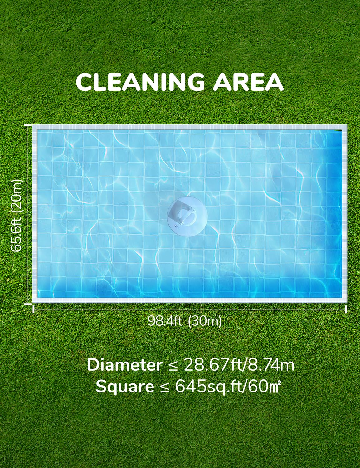 - 🦠【Cordless Pool Robot】Free yourself from the confines of a wired pool robot. The pool robot is 100% cordless. Developed for above-ground pools up to 60 m². Newly developed and improved batteries are fully charged in just 2.5 hours. The pool vacuum cleaner offers better and finer cleaning for your pool.