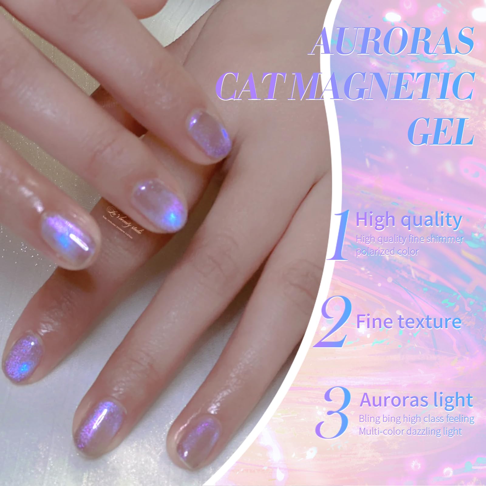 - PACKAGE CONTENTS: 15ml Purple Auroras Cat Magnetic Gel, The newly upgraded formula can suck out the perfect cat-eye shapes in a few seconds. Cure under UV/LED nail dryer lamp, making it suitable for natural, false, and acrylic nails. Say goodbye to expensive trips to the salon and hello to DIY fun and professional-looking results!