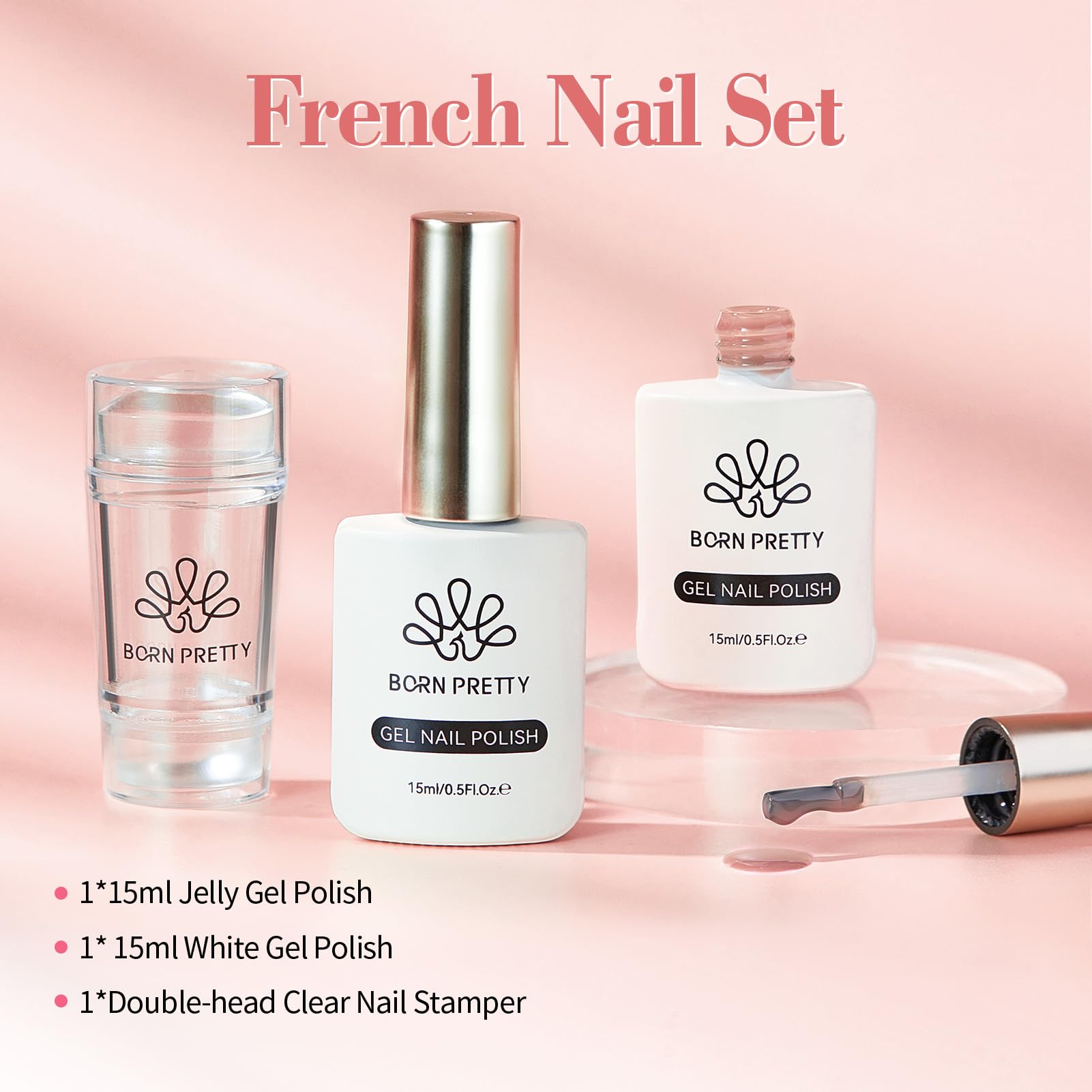 - 【Package Contents】Born Pretty French Tip Nail Stamps Set contains 1PCS Long French Tip Nail Stamp, 1PCS White Gel Nail Polish and 1PCS Nude Pink Jelly Gel Nail Polish. Jelly Nude Gel Nail Polish is a semi-transparent gel nail polish, with white nail polish, you can easily create stylish and fun French manicure artwork with the nail stamps.