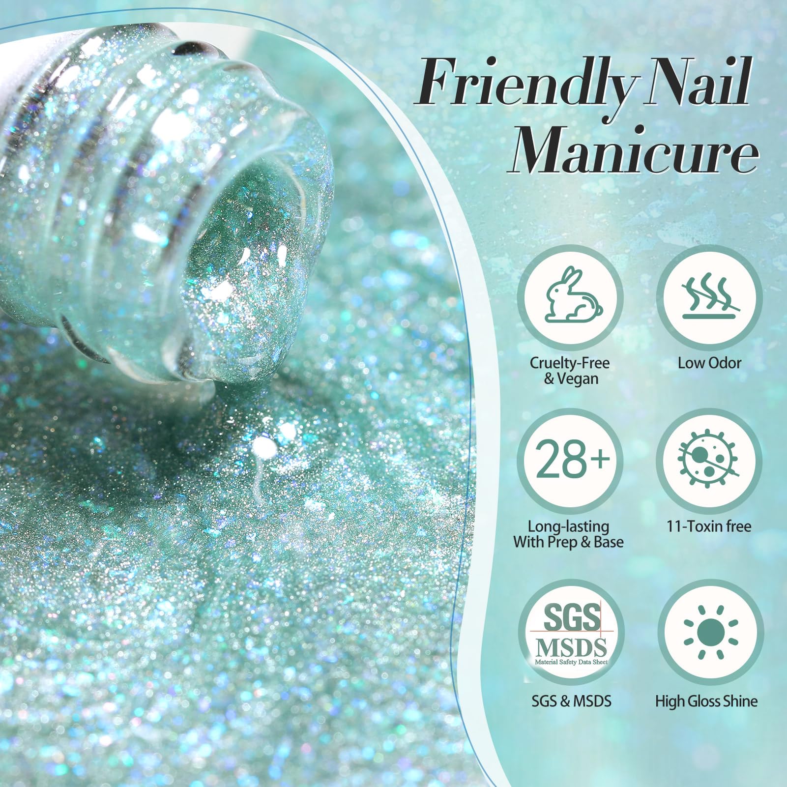 BORN PRETTY Green Cat Magnetic Eye Gel Nail Polish Shimmer Glitter Flakes Holographic Aurora Mint Green Magnetic Gel Polish Nail Art Manicure DIY at Home 15ML