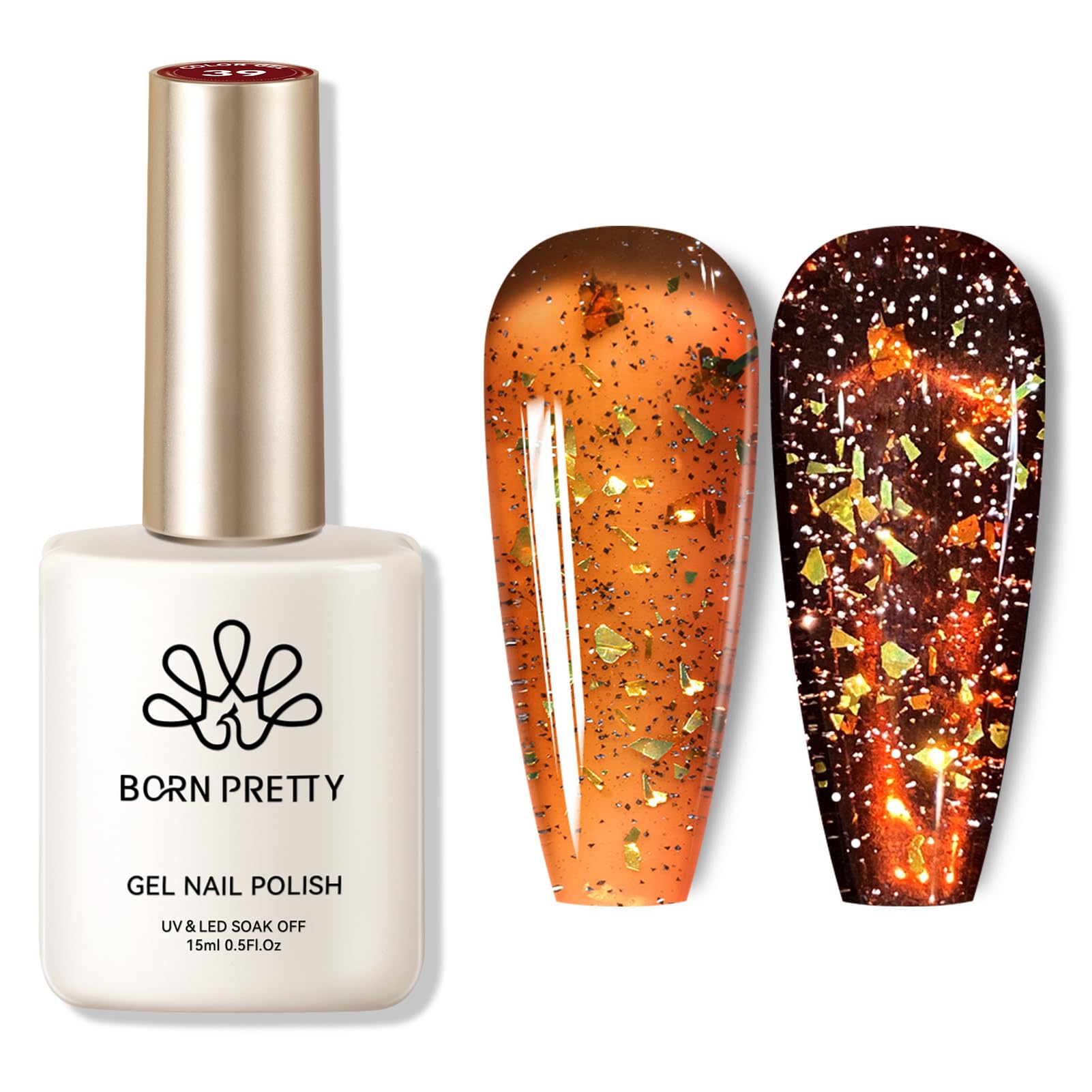 - PACKAGE CONTENTS: 1 bottle 15ml Glitter Jelly Gel Nail Polish. Born Pretty glitter gel to deliver a high-gloss finish and also a plumping effect to give your nails a shining look, popular and trendy colors suitable for fall seasons and daily life.