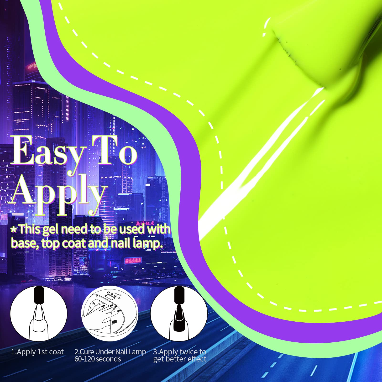 - Easy Application and Good Tenacity: The series of bright Neon gel nail polish set is long lasting for 21+ days with perfect shine under proper application - With base gel top coat under the full application process.