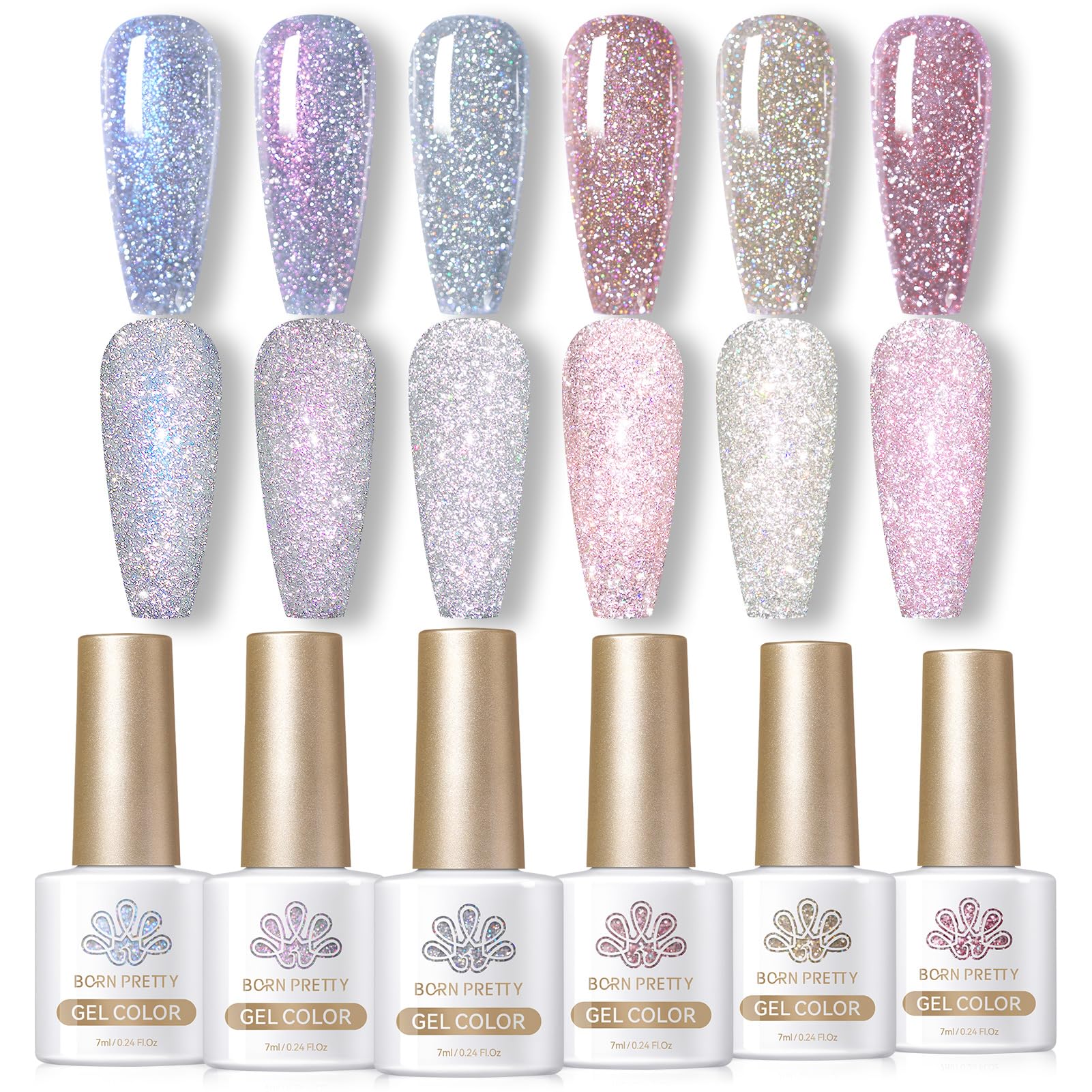 Born Pretty Reflective Glitter Gel Polish Gold Silver Glitter Sparkly Shiny Disco Dj Led Gel Nail Polish Nail Varnish 6Pcs 7Ml