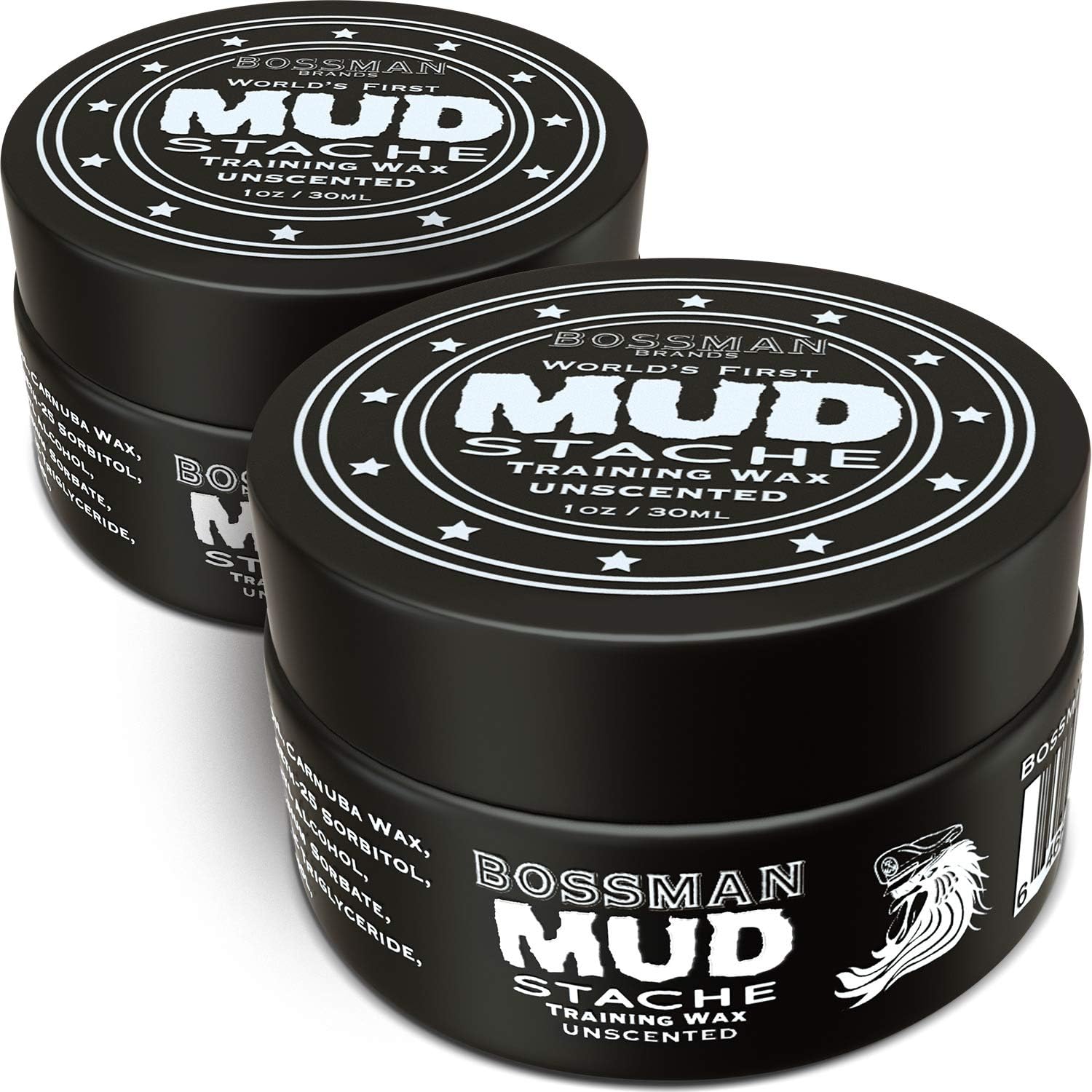 Bossman MUDstache Unscented Mustache Wax for Men (1 oz) - 2 Pack - Strong 24-Hour Hold, Non-Tacky & Easy to Apply for Taming & Styling