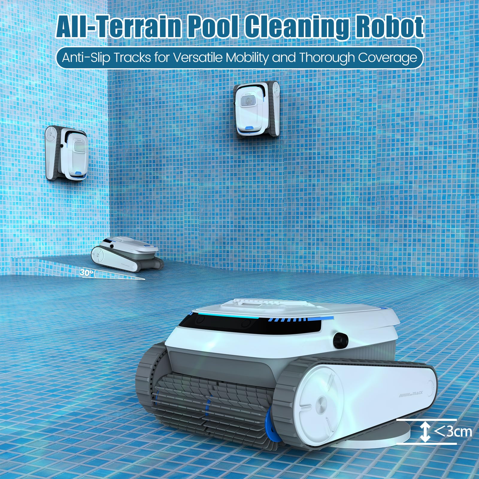 - Durable & Adaptable: Its durable tracks can handle slopes up to 30° at the pool bottom and easily cross 1.18 - inch drains. The 5200mAh battery provides coverage up to 1829 square feet, making it suitable for both small above ground pool vacuums and large inground pool cleaning needs.
