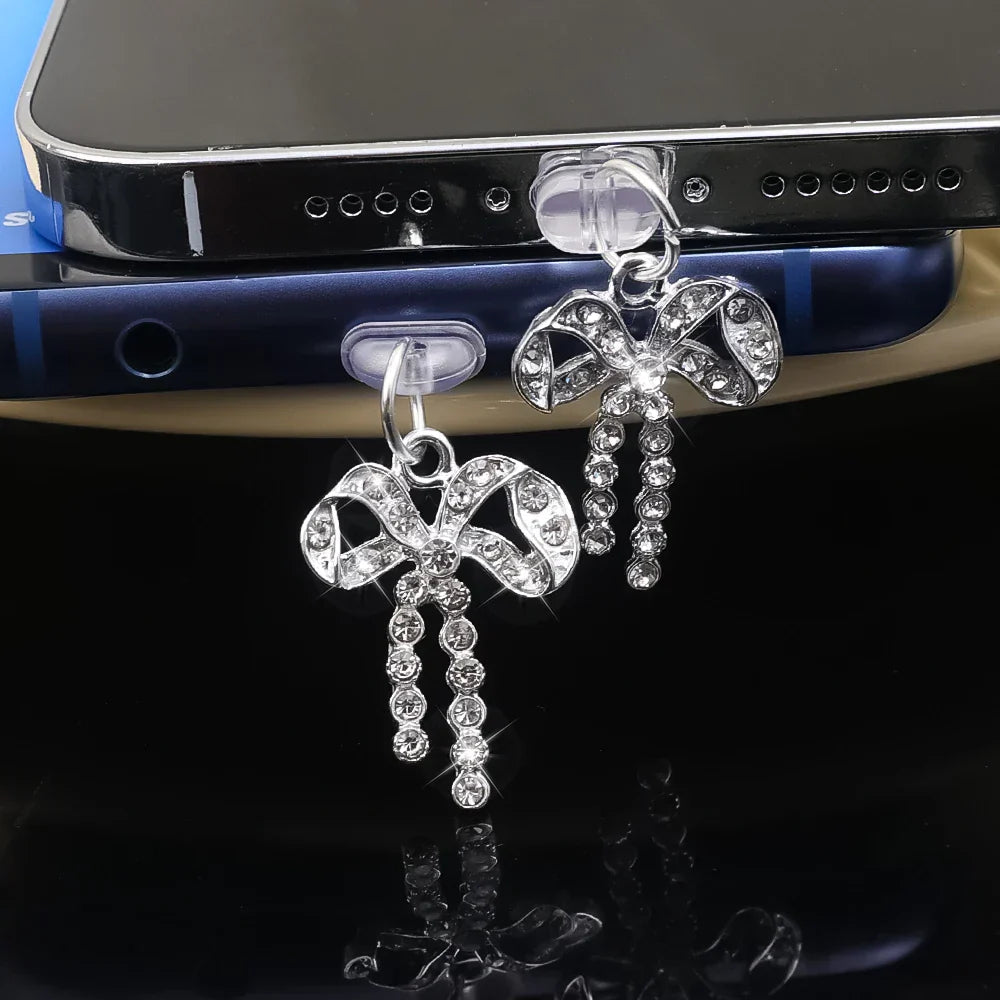 Elevate your phone's style with our Bowknot Phone Dust Plug Pendant. This elegant and functional accessory not only adds a touch of sophistication to your device, but also keeps it free from dust and debris. A must-have for any fashion-forward phone owner.