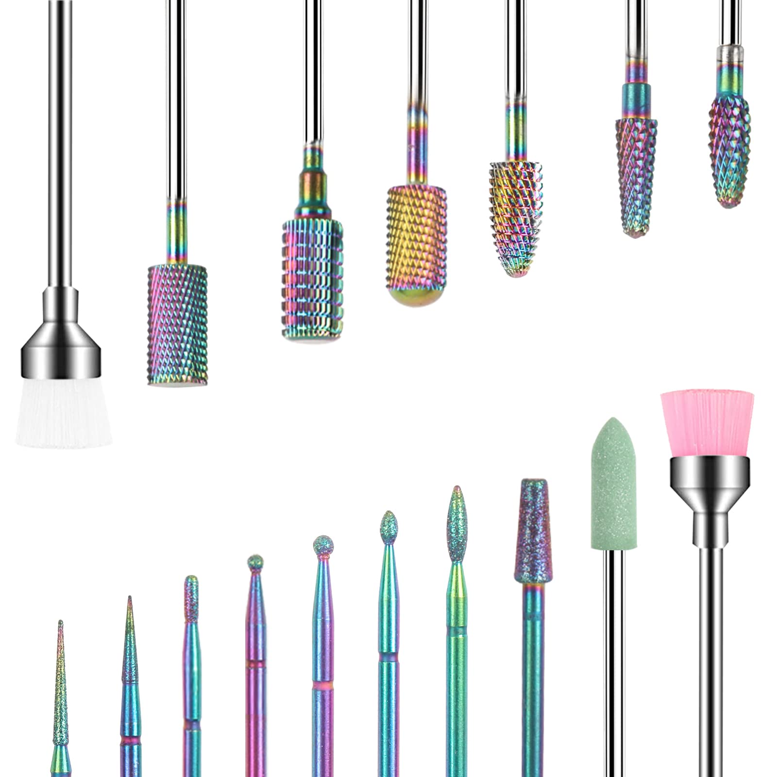 - 【Quality Materials】 Made of high hardness tungsten carbide is hard to rust and designed with rainbow color, durable and sturdy enough to quickly remove hard acrylic gel nail. Superior nail drill bits protect your skin due to heat resistance
