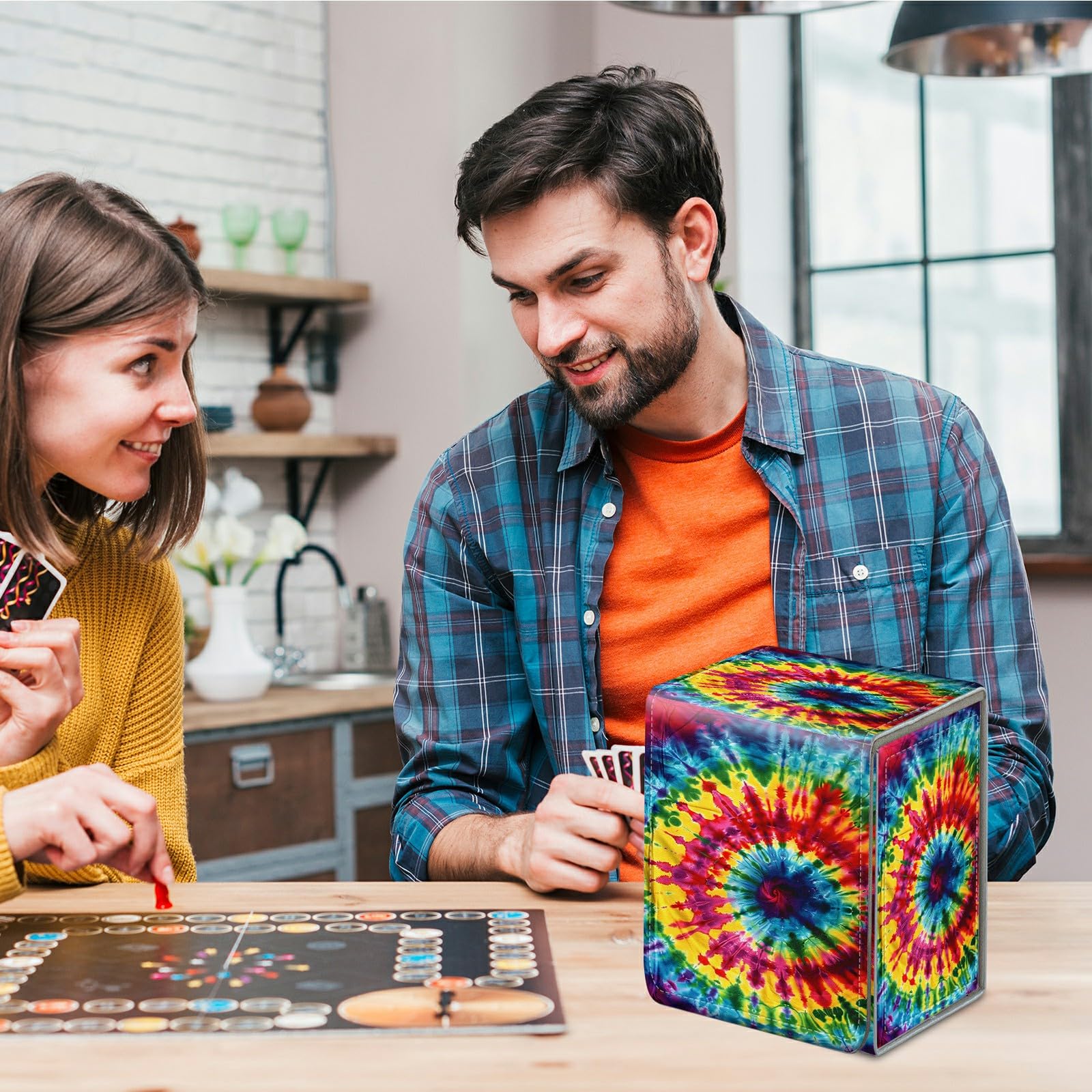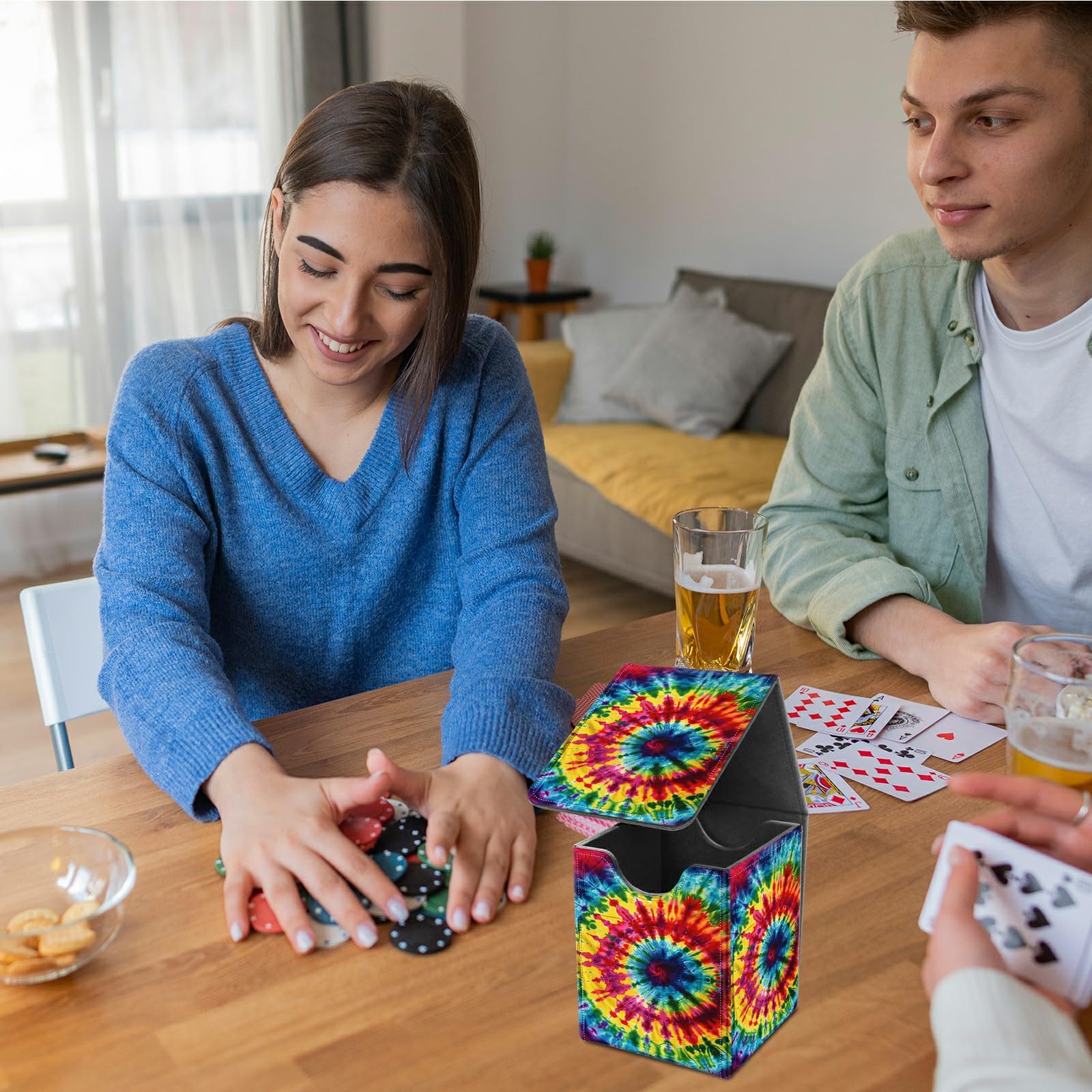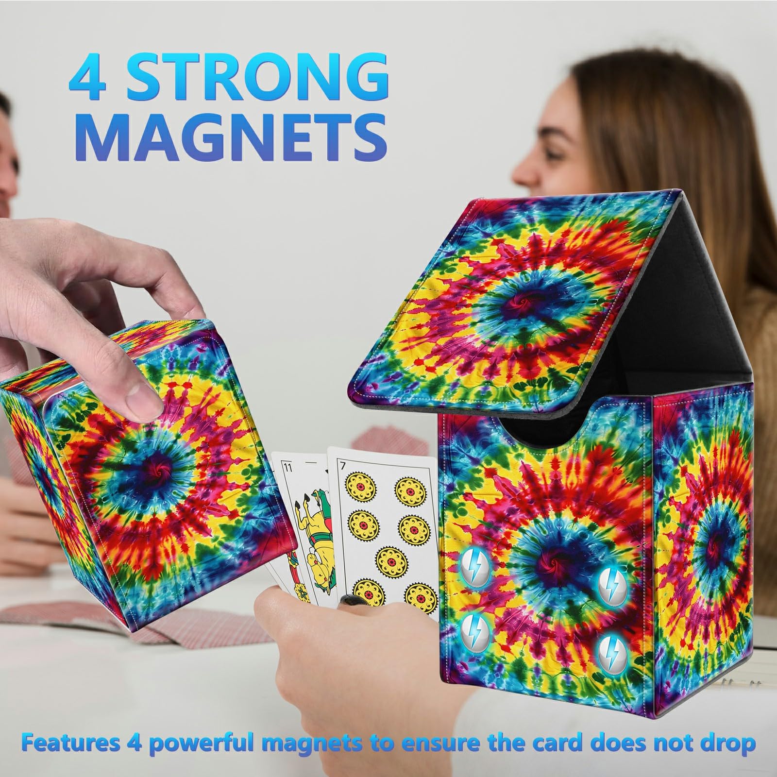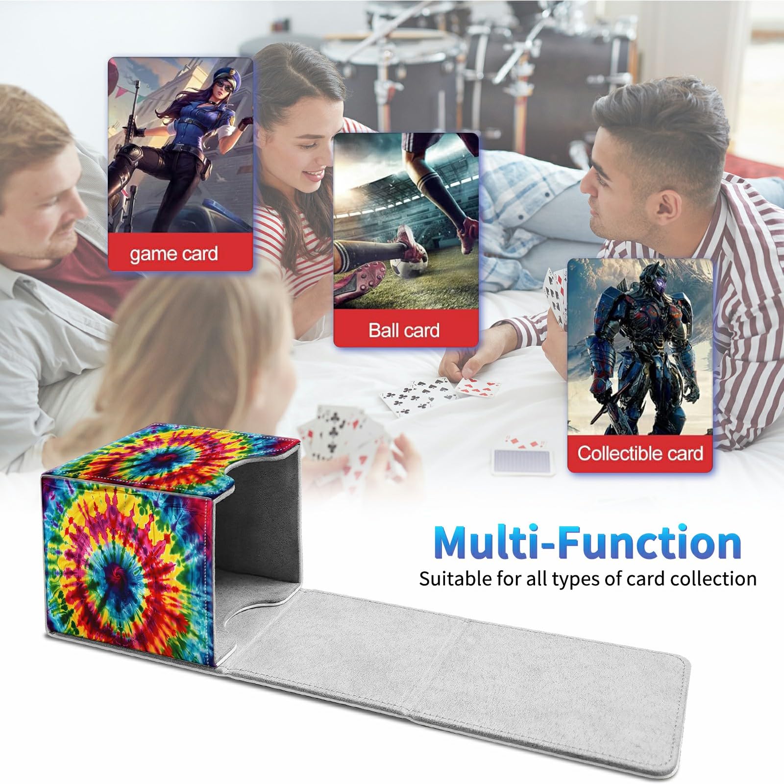 BREIDMKFM Card Deck Box for Trading Cards, MTG Commander Deck Box Fits 100+ Single Sleeved Cards, Leather Magnetic Card Storage Box for YuGiOh TCG CCG Cards, Rainbow Pattern