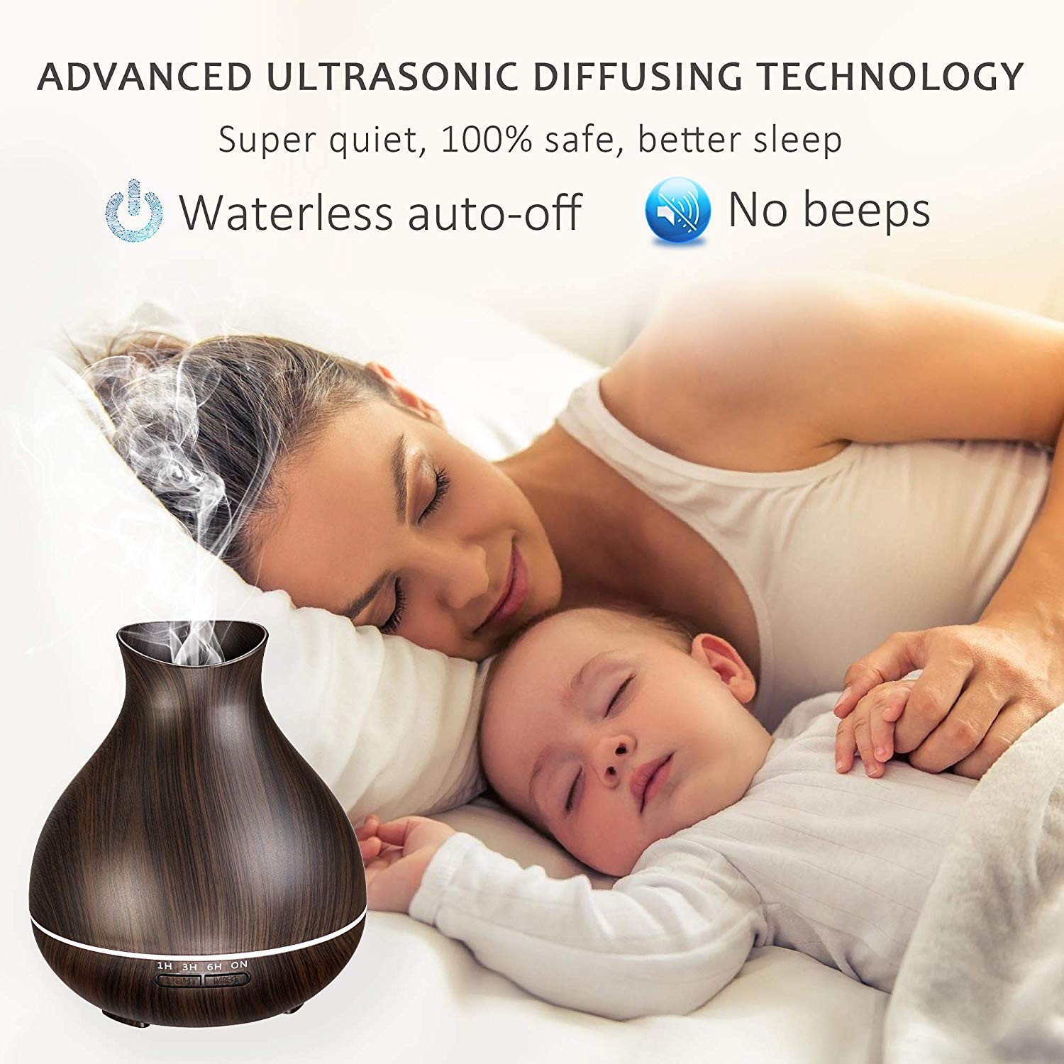 - REDUCE DRY CLIMATE IN WINTER: This aromatherapy diffuser helps to alleviate winter dryness by increasing air humidity. It improves breathing and sleep and reduces static shock in dry climates. Some essential oils can produce a healing effect that relieves your sinuses and can help you breathe better when you use an air conditioner. A great gift for yourself, parents, friends, and partners.
