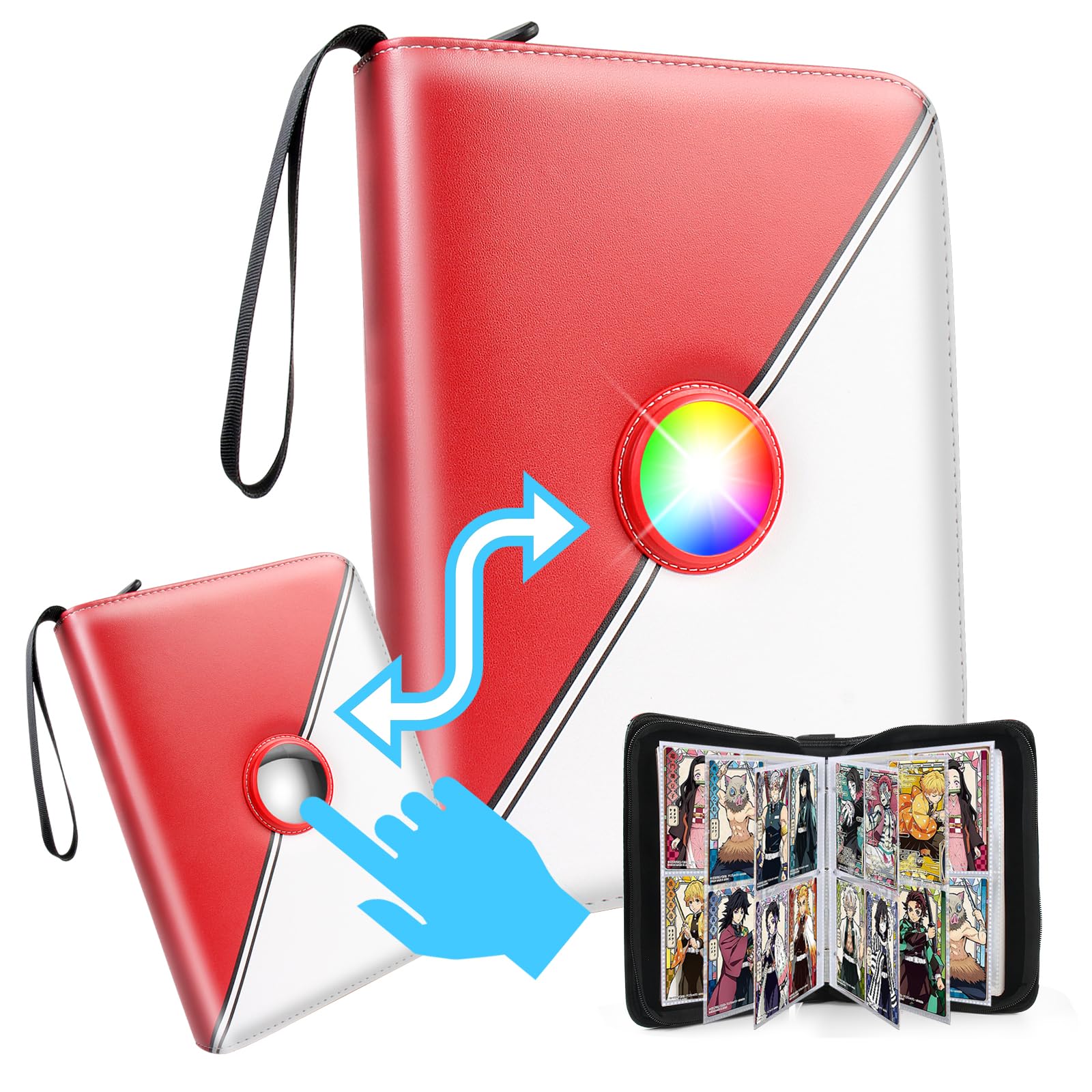 - ✨Our Trading Card Binder 4 Pocket have Eye-Catching Illumination: With Just A Gentle Tap On The Circular Exterior, Our Card Binder Instantly Lights Up In Vibrant And Mesmerizing Seven-Color Led Lights. This Feature Not Only Adds A Visually Stunning Element To Your Collection, But Also Makes It Easier To Identify And Showcase Your Favorite Cards.
