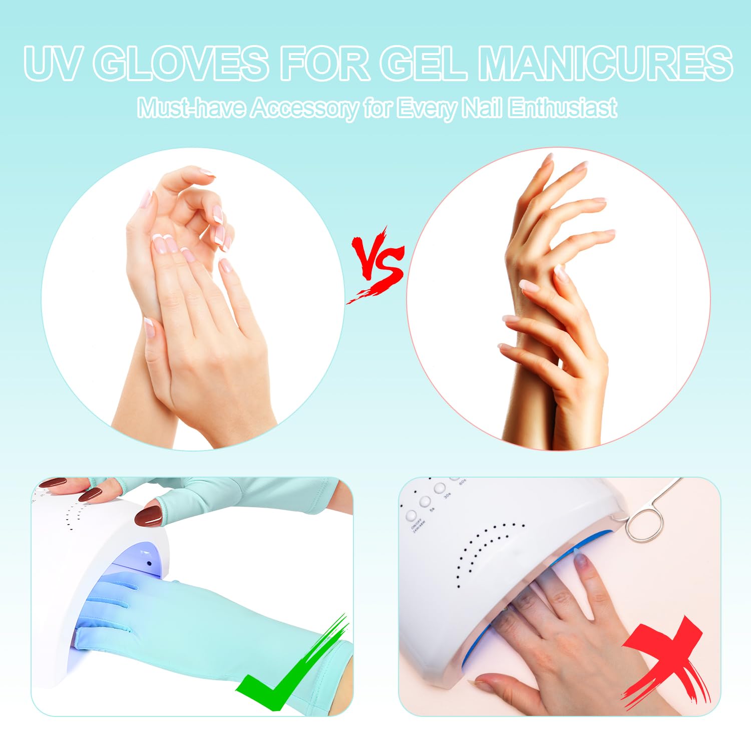 - UV Gloves for Gel Nail Lamp: The perfect solution for protecting your hands during gel nail application! Designed with utmost care and precision, these gloves are a must-have accessory for every nail enthusiast.