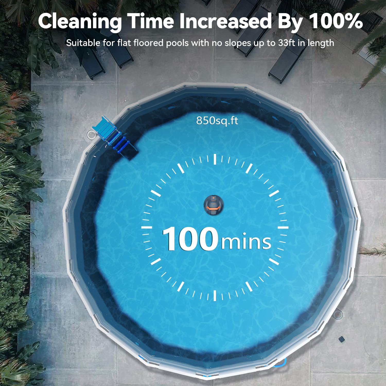 - Easy to Use: No more worry about tangled wires and messy hoses, just press the power button, Coasteering pool robot vacuum can automatically clean the swimming pool with less manual maintenance. It will automatically stop near the edge of your pool when the battery is running low. Easy to schedule it to clean up daily debris and dirt, even for first-time users