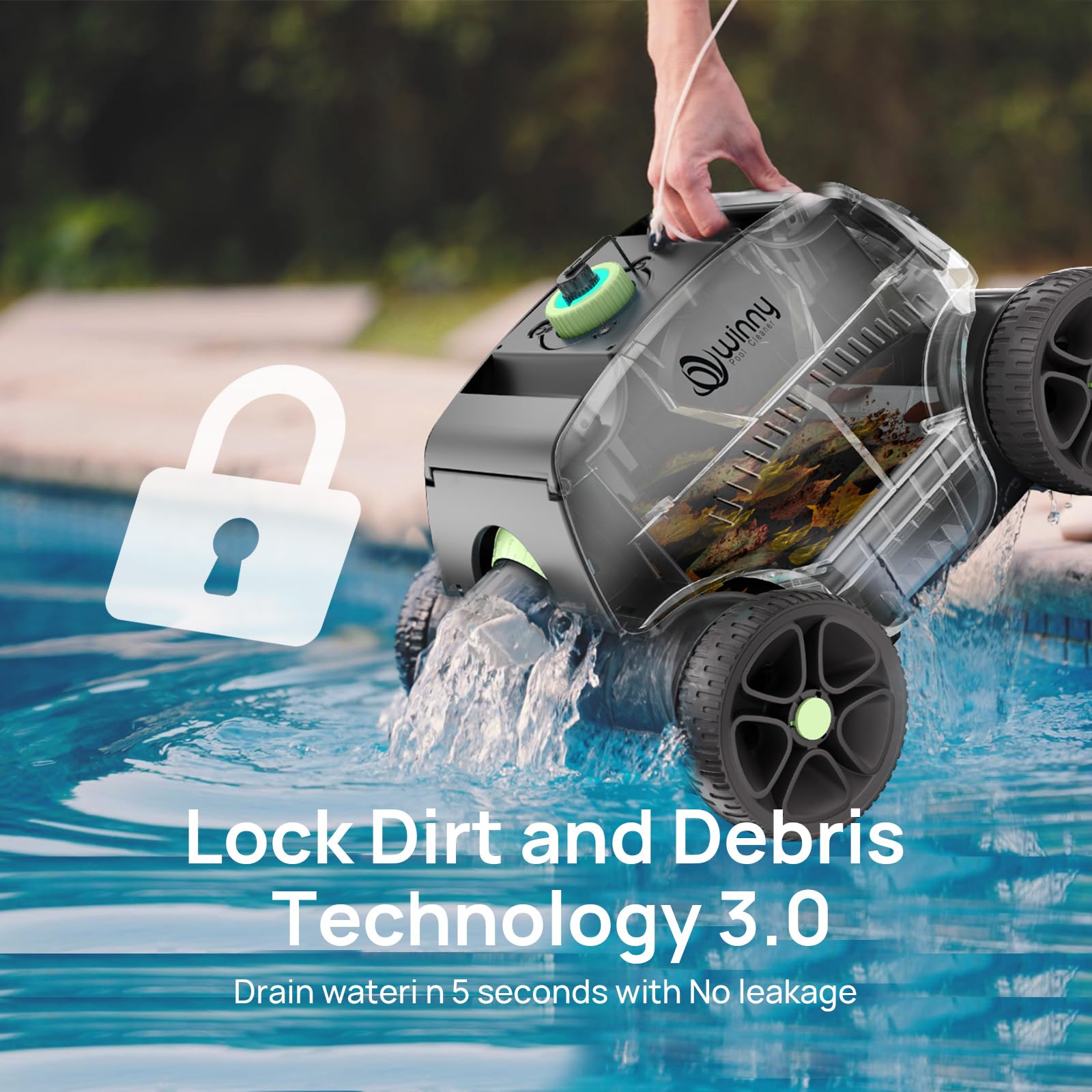 - 【Hard to Retrieve Your Cleaner? Smart Self-Parking at Pool Edge】When the battery runs low, the pool vacuum robot automatically parks near the pool wall for quick and easy pickup.