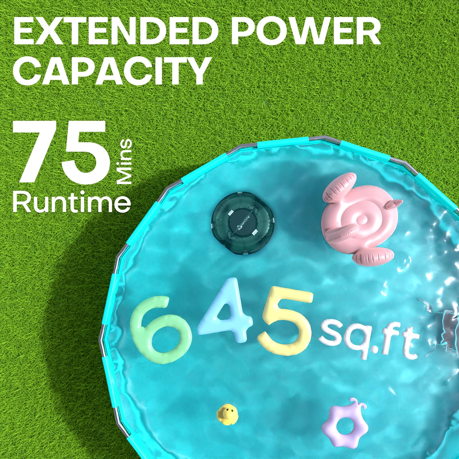 Cordless Robotic Pool Cleaner,Powerful Suction & Dual-Layer Filtration Automatic Vacuum for Above-Ground Pools up to 645 Sq. Ft, Lightweight, Self-Parking