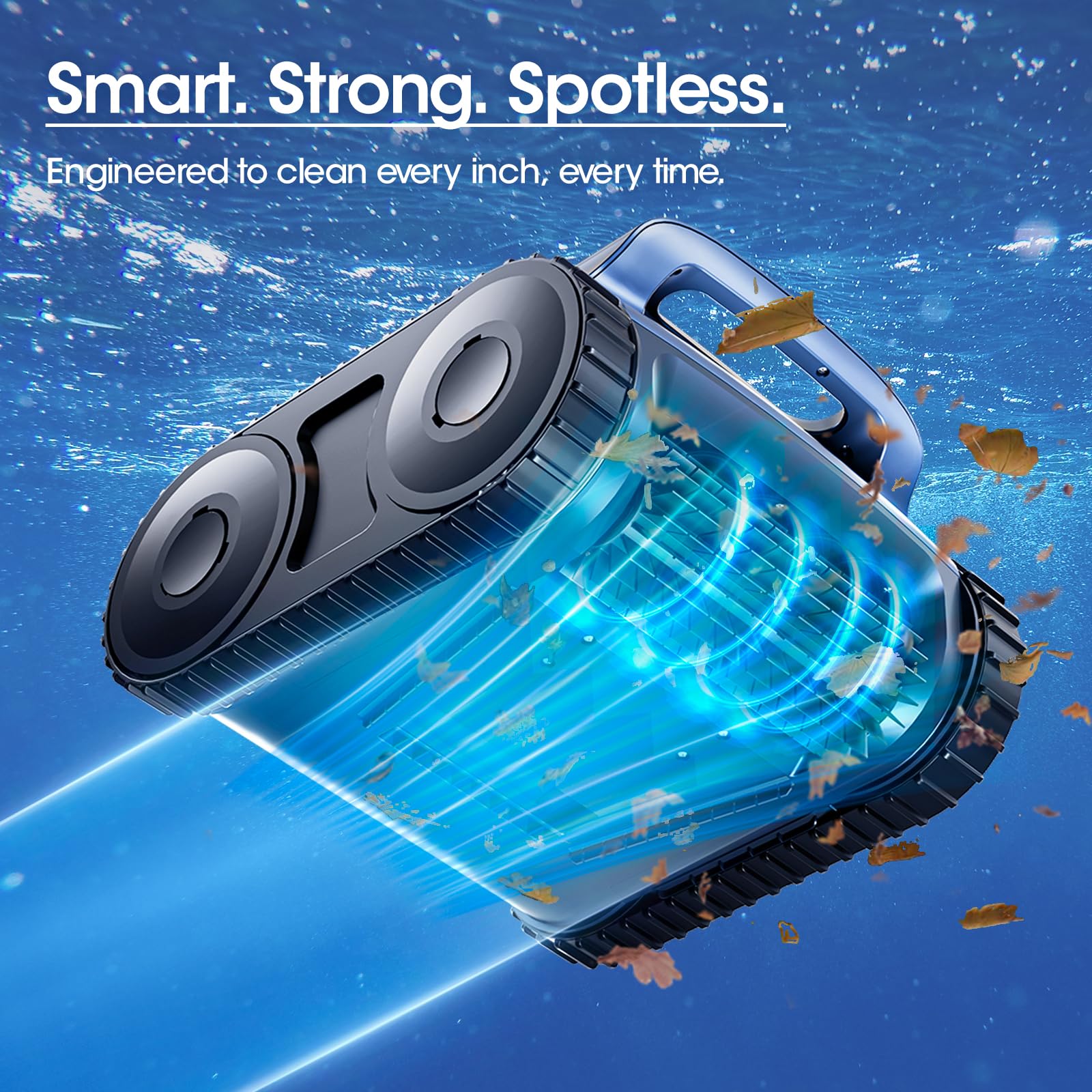 - 【Dual 180W Motors with IP68-Grade Reliability】 Powered by two independently controlled 180W brushless motors, the robotic pool cleaner delivers superior suction and cleaning force. Its reinforced, IP68-certified internal architecture ensures quiet, long-lasting operation while effectively removing debris from leaves to fine particles.