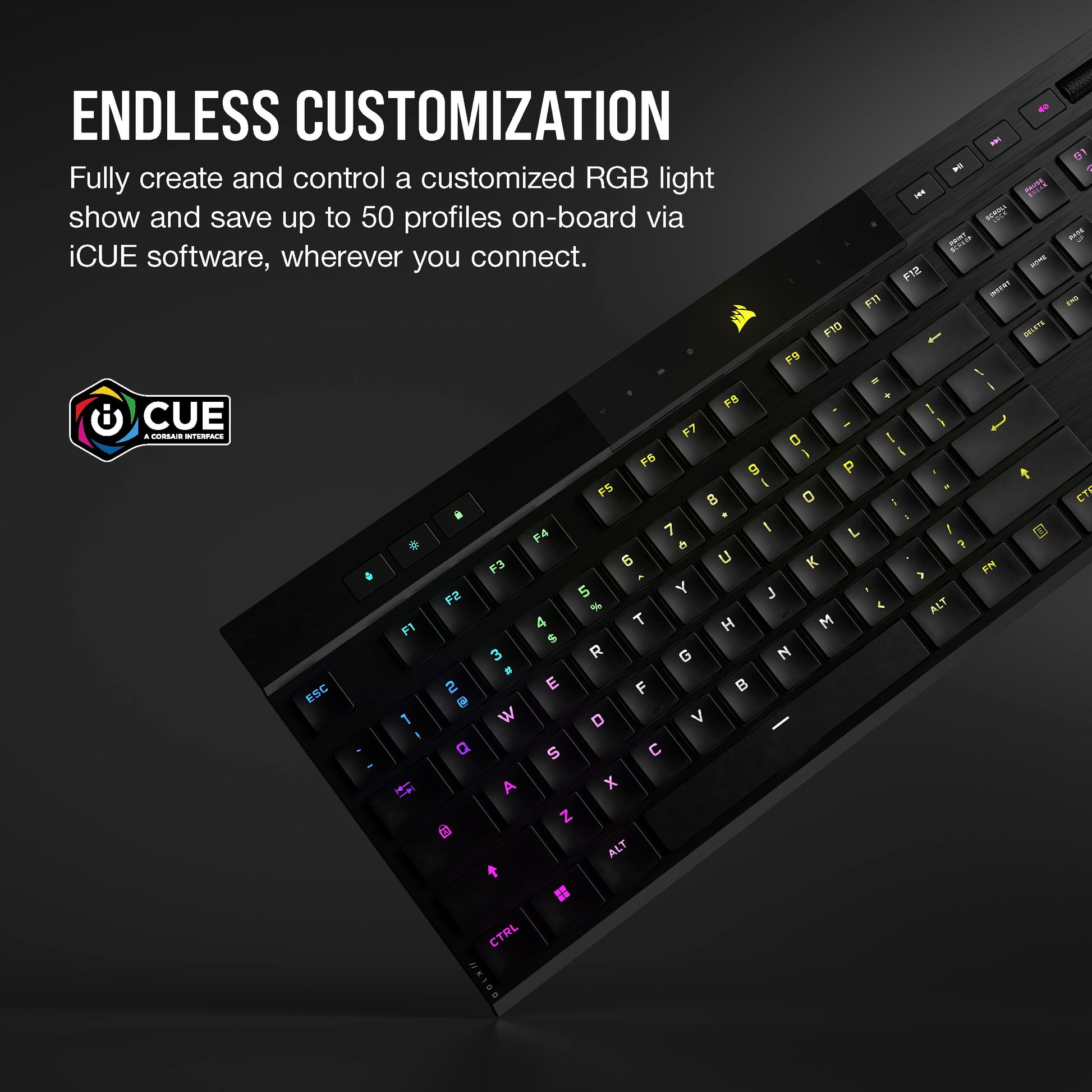 Corsair K100 AIR Wireless RGB Mechanical Gaming Keyboard - Ultra-Thin, Sub-1ms Slipstream , Low-Latency Bluetooth, Cherry MX Ultra Low Profile Keyswitches - NA Layout, QWERTY - Black