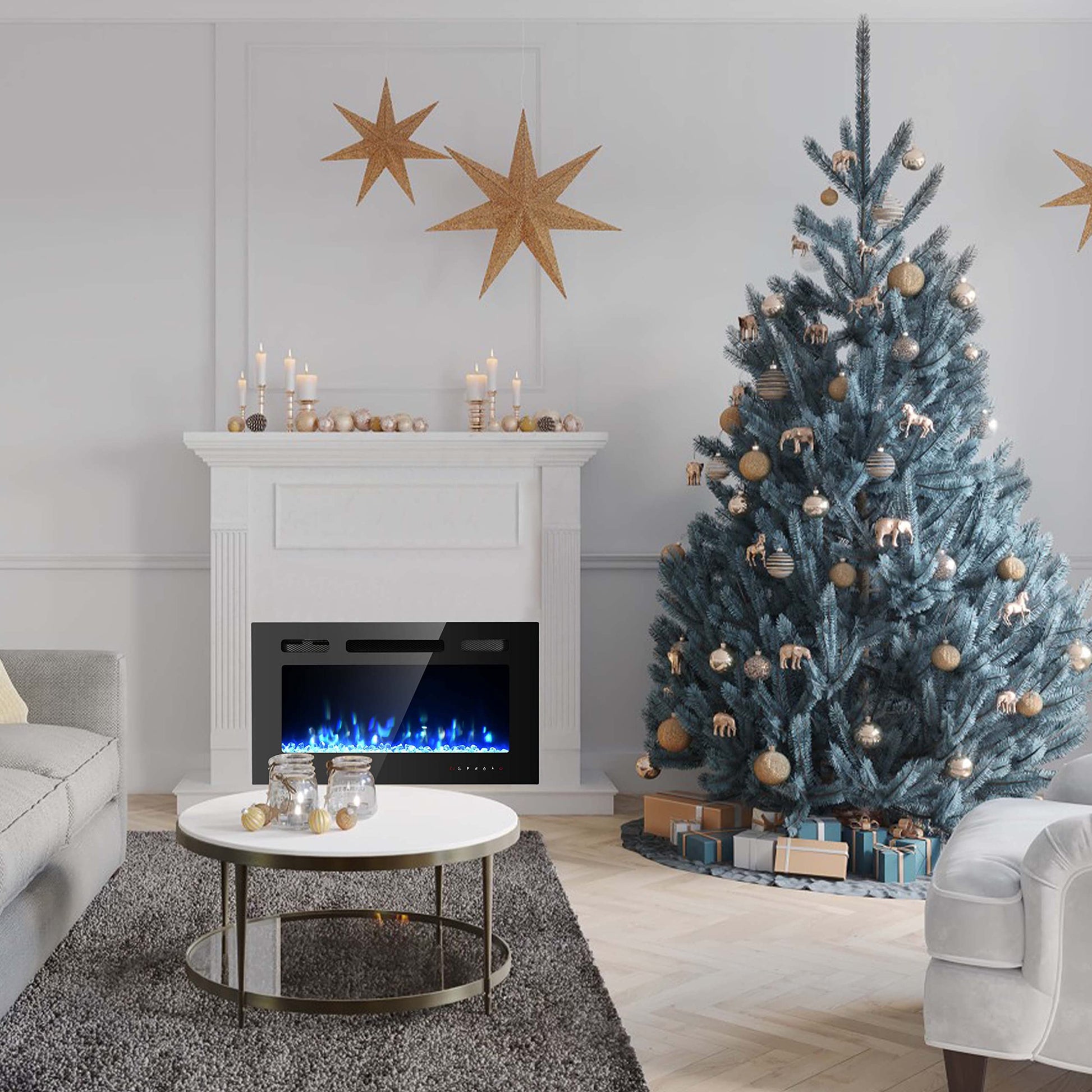 - 【Amazing Flame Effect】 : The 12 flame colors make your room and the electric fireplace perfectly blend under any decoration. It can be operated with or without heat. In addition, it also has two ash beds for you to choose: Log/Crystal. 5 kinds of flame brightness can be adjusted, from soft to strong, creating a comfortable feeling in your room.