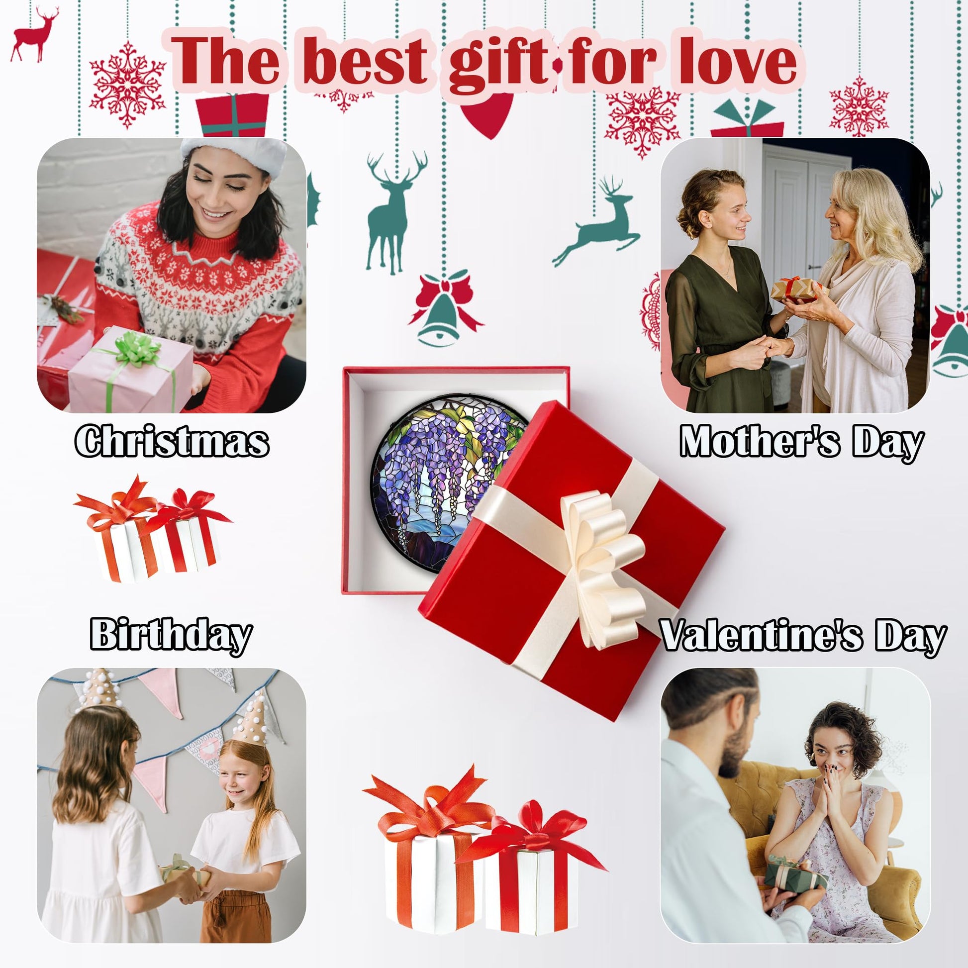 DASTOLL Stained Glass Window Hanging, Purple Wisteria Flowers Suncatcher for Doors Window Home Plant Sun Catchers Decoration Mother's Day Birthday Gifts for Women, Men, and Mom 6.3x6.3 in