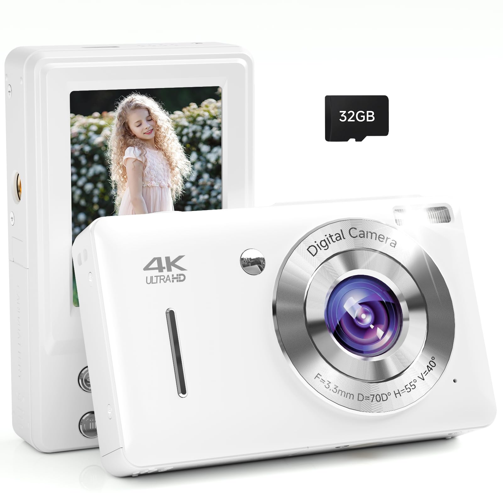 - 【44MP Photo & 1080P FHD Video】:This compact digital camera is equipped with Upgrade CMOS technology ensures precise detail. Mini camera support 44MP photos and 1080P UHD video recording and features a 2.4inch Ultra HD display. It comes with a 32GB memory card to record fun and memorable moments at any time.