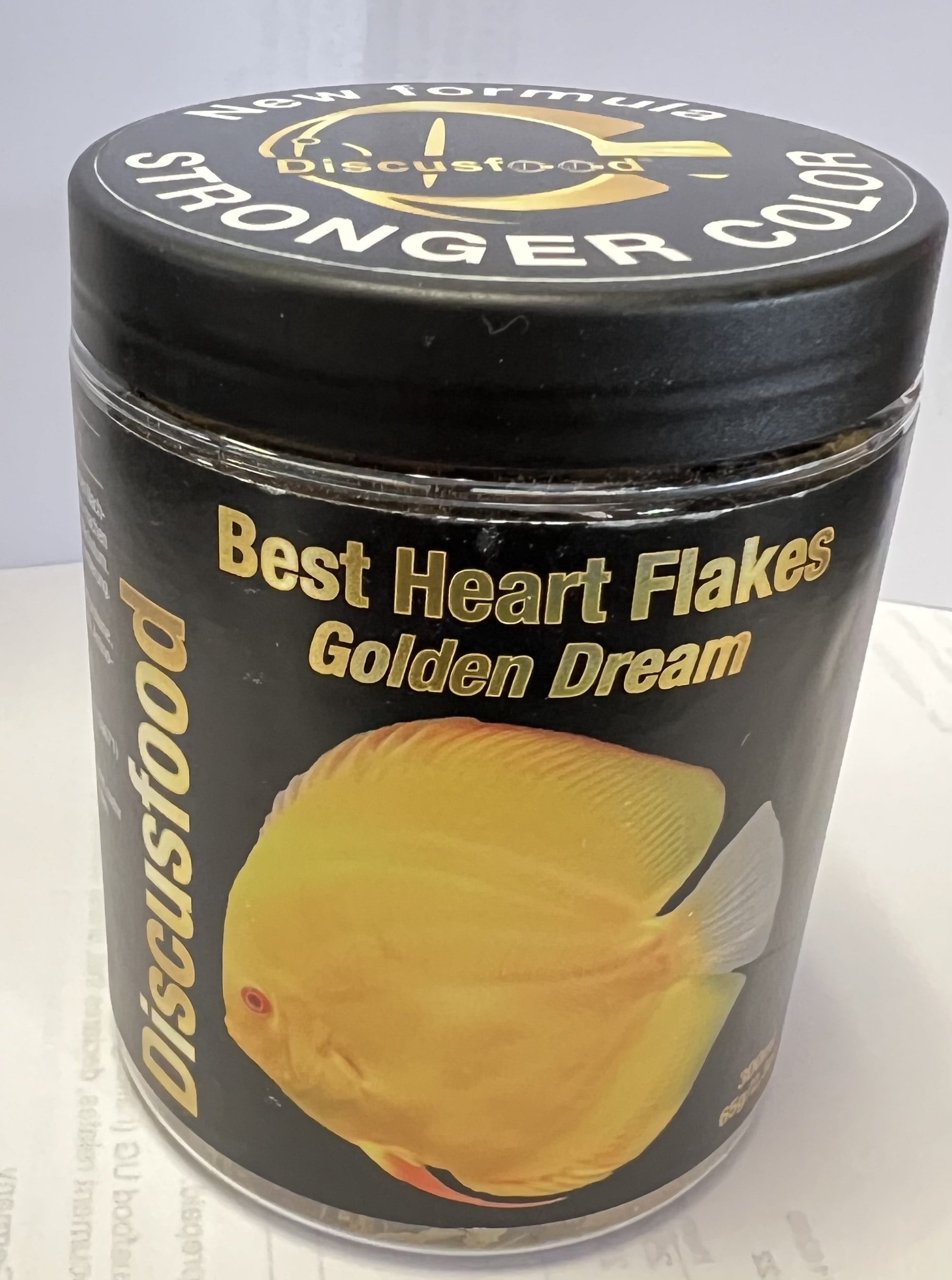 Best Heart Flake Golden Dream 300 mlBest Heart Flake Golden Dream is a high-quality supplementary food specially developed for discus fish to promote their golden pigmentation. The recipe contains carefully selected ingredients such as beef proteins, rice, MSC-certified krill, insect proteins, salmon oil, garlic, squid meal, yeast extracts, spirulina, kelp, prebiotics, amino acids and red pepper pigment. The flakes are easily digestible, stable in water and contribute to lower water pollution. Ideal for supporting the growth and health of your fish. This flake is a supplementary food, so please follow the feeding recommendations on each tin carefully.