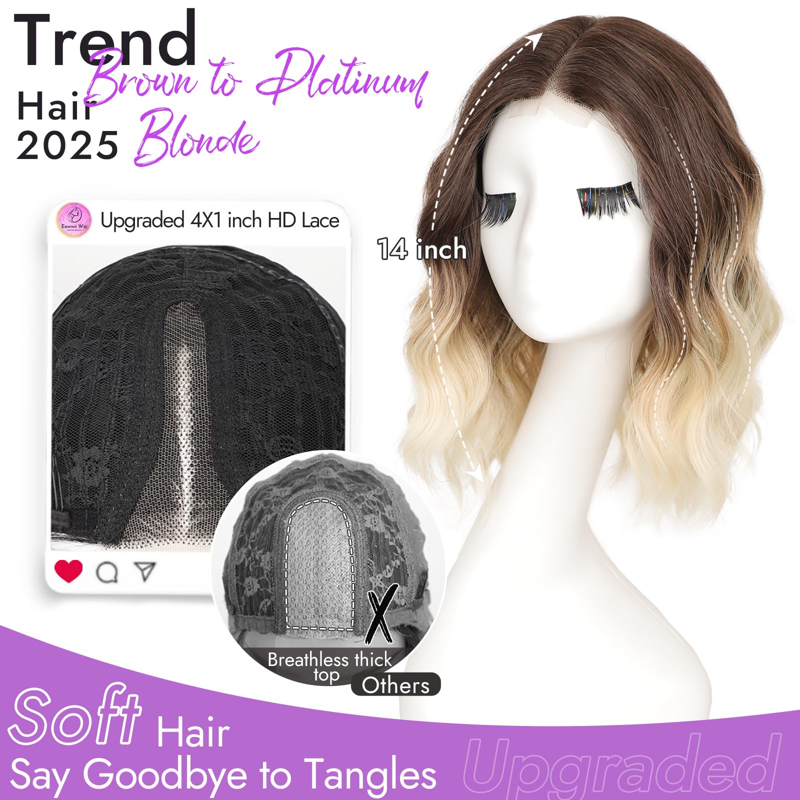 - Wig Description: Our brown to platinum blonde wavy bob wig for women is made of heat-resistant synthetic fibers, with soft and comfortable hair texture, using a new upgraded process to make the wig more natural and easy to wear.No tangling or shedding