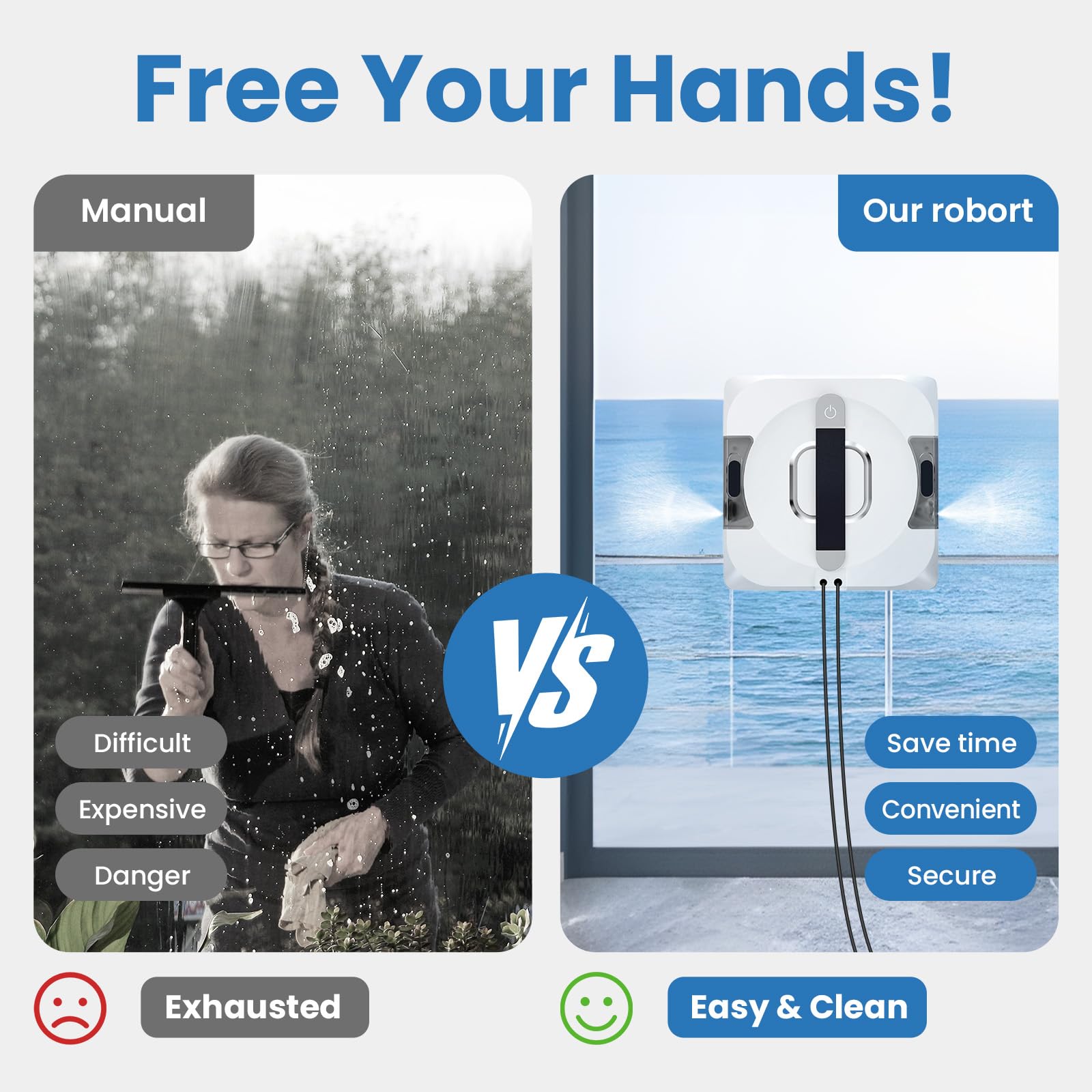 - Dual-Spray Design for Efficient Cleaning: Equipped with a new chassis and the industry's largest removable water tank, this automatic window cleaning robot offers dual spray functionality with a replaceable atomizer. The 110ml dual-water tank ensures longer cleaning sessions and reduces the need for frequent refills
