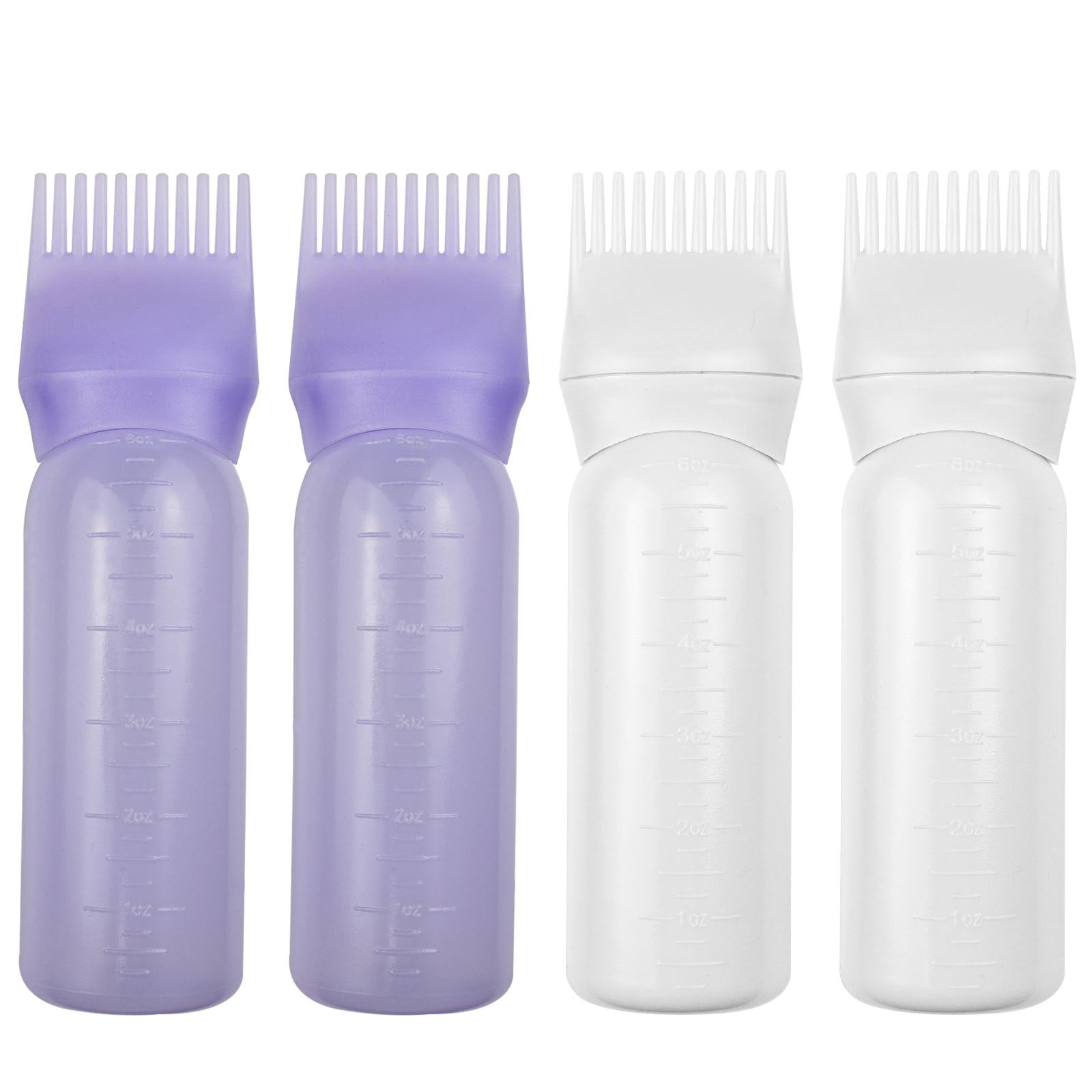 ELANE 4 Pack Root Comb Applicator Bottle,Oil Comb Applicator for Hair Dye Shampoos Hair Salons (2 purple + 2 white)
