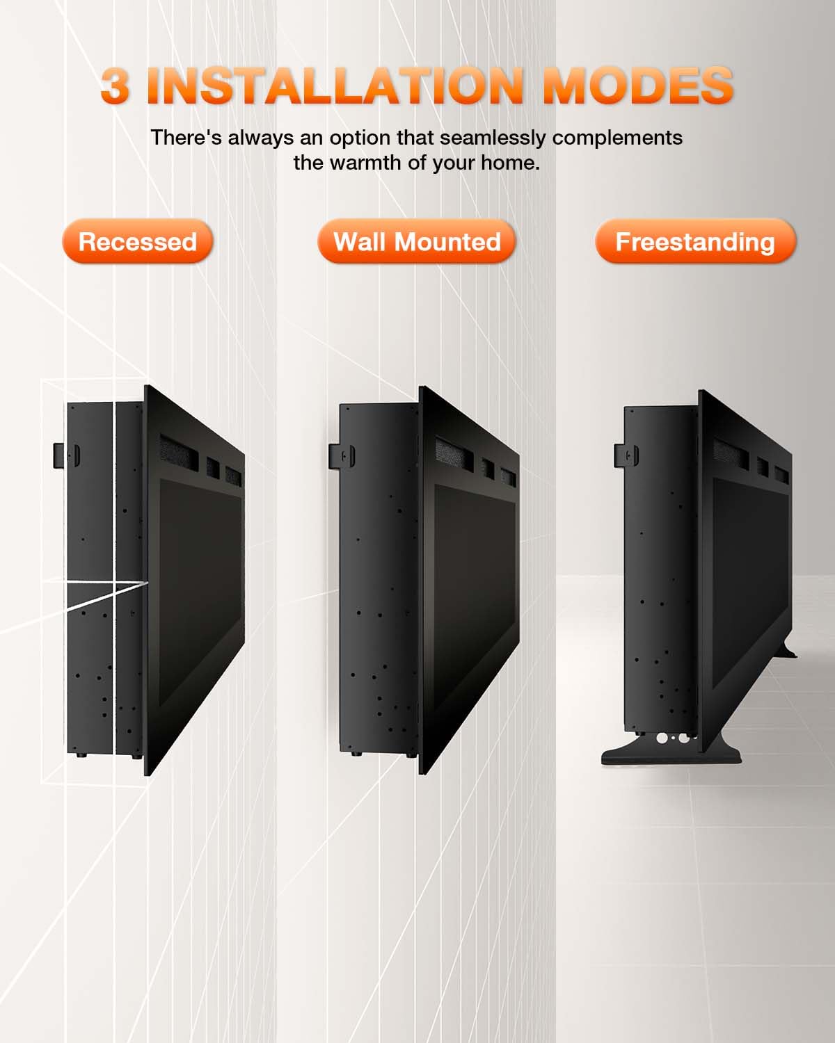 - Easy Installation: We offer various installation methods, including wall-mounted, built-in, and free-standing, to cater to different needs. The product comes with a clear instruction manual, and with simple steps, you can complete the entire installation within an hour.Then, sit back with your loved one and enjoy the lifelike flames