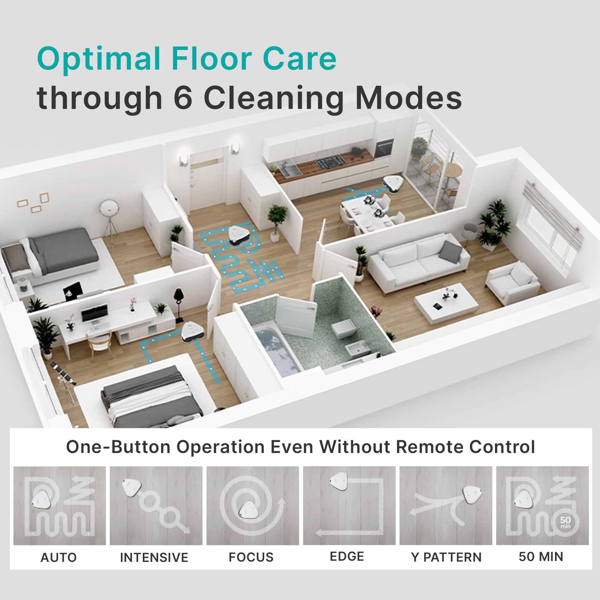 - [Easy Controls & Various modes] Simplify your cleaning routine with 7 selectable cleaning modes on the remote control, and start cleaning with just a single button press. No need to study complicated instructions nor to download applications.