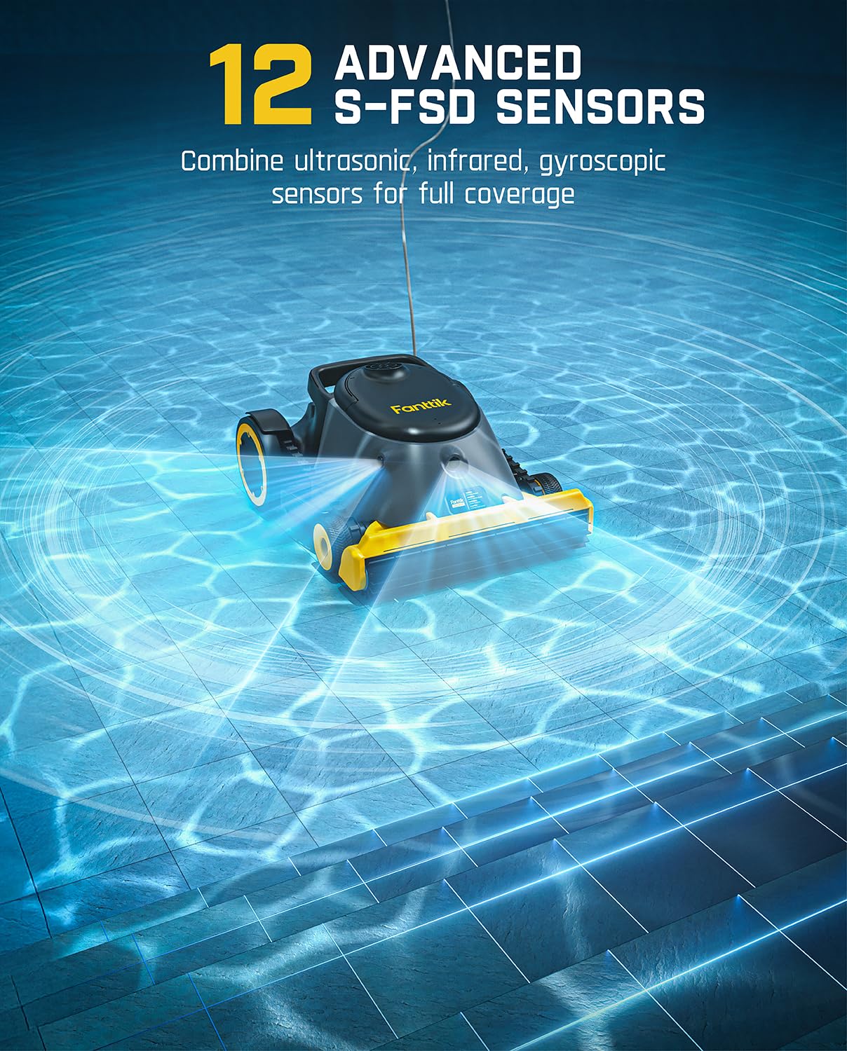- 4X Cleaning Efficiency for Tough Stains: The SwiftCruise dual-motor system delivers 0.5m/s high-speed movement (4x industry average), working with a 40cm extra-wide brush and 4500RPM variable-speed pump (4000GPH max drainage) to achieve 4x cleaning efficiency. The active invert brush design enables easy obstacle avoidance and adapts to complex pool bottom terrain for more efficient cleaning
