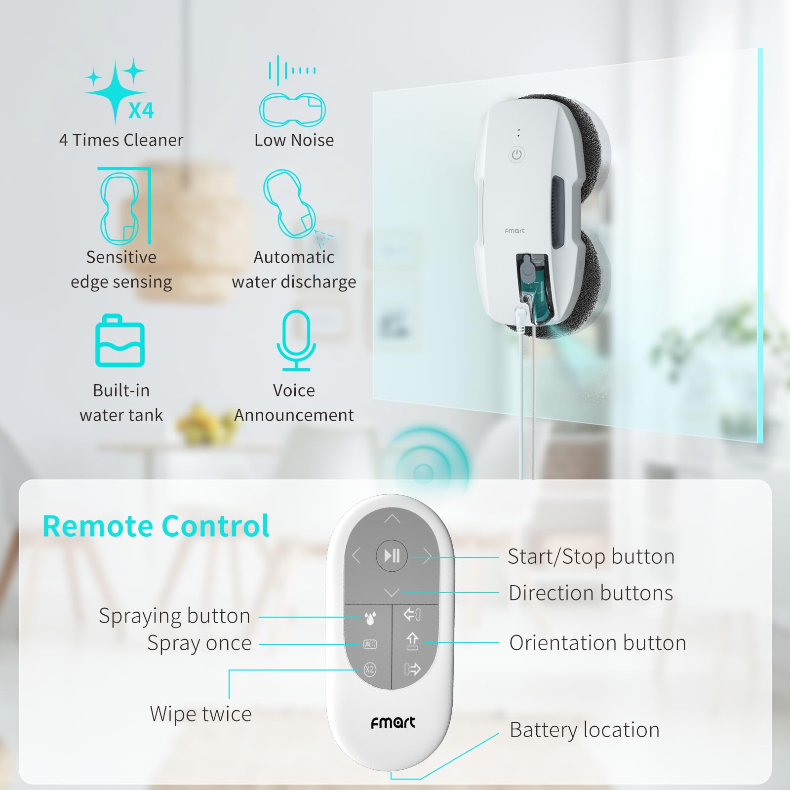 - Easy Cleaning: With up to 3800Pa of suction power, the window cleaner robot intelligently adjusts its suction based on the glass's dirt level for deep and efficient cleaning. It frees your hands, making window cleaning easy, safe, and time-saving