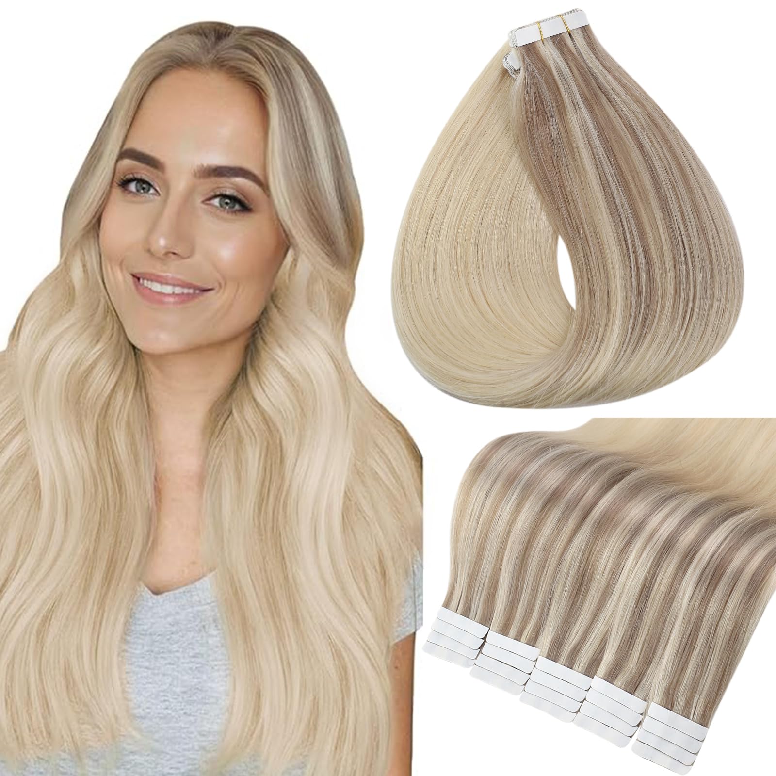 Full Shine Tape in Hair Extensions Human Hair Color 18/22/60 Blonde Tape in Extensions 12 Inch Invisible Seamless Extension Silky Straight Real Remy Skin Weft 20 Pcs 30 Grams