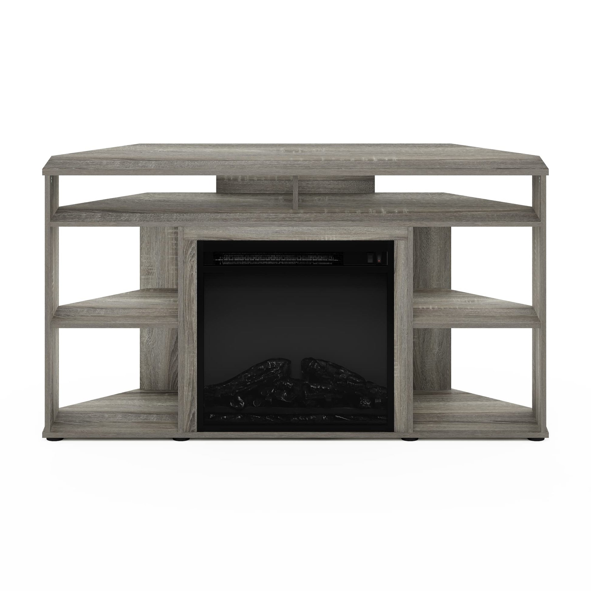 Furinno Jensen Corner TV Stand with Fireplace for TV up to 55 Inches, French Oak Grey