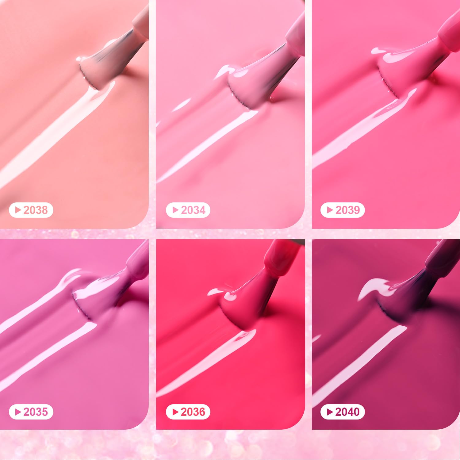 GAOY Pink Gel Nail Polish Set, 6 Colors Neon Light Bright Baby Pink Soak Off UV Light Cure Gel Polish Kit for Salon and Nail Art DIY at Home