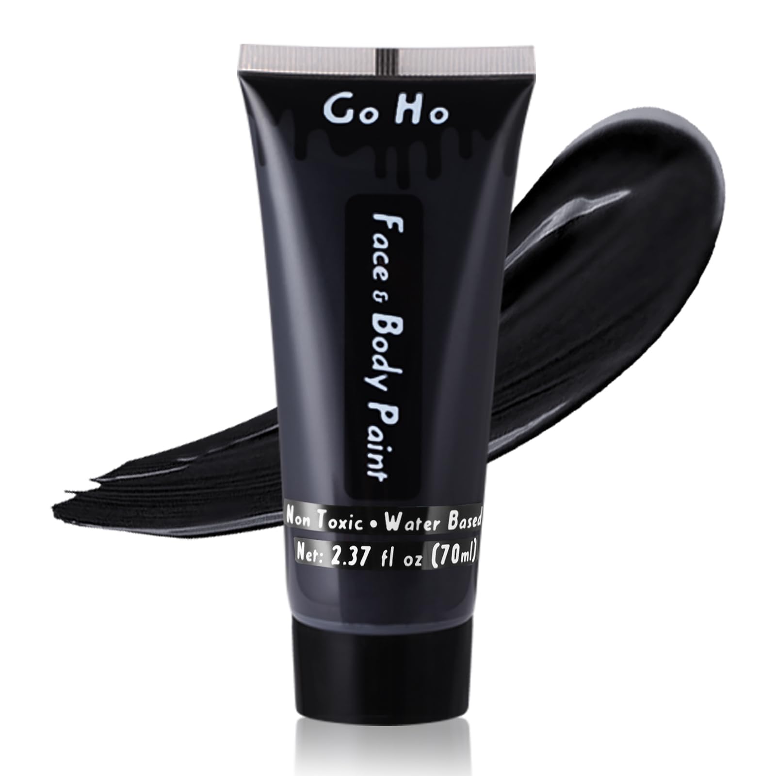 Go Ho Black Face Body Paint Washable(2.37 oz),Water Based Cream Black Face Paint,Skull Skeleton Zombie Clown Makeup,Black Body Paint for SFX Cosplay Costumes Festivals Halloween Makeup