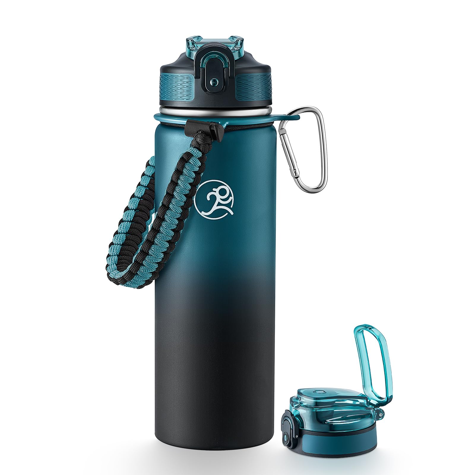 - Insulated water bottle 24 oz: 24 oz insulated water bottle has a matte finish and comes with 2 lids (Lid with Straw/No Straw) and a Paracord handle for easy portability; Its wide mouth makes it easy to fill, pour, and clean, and the leak-proof cap ensures worry transport.