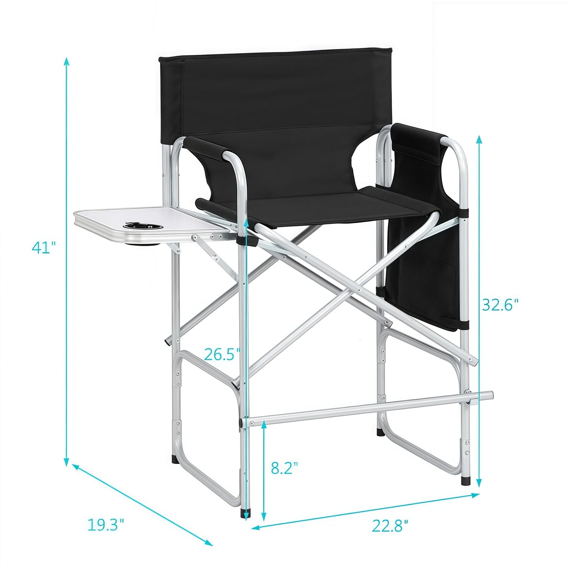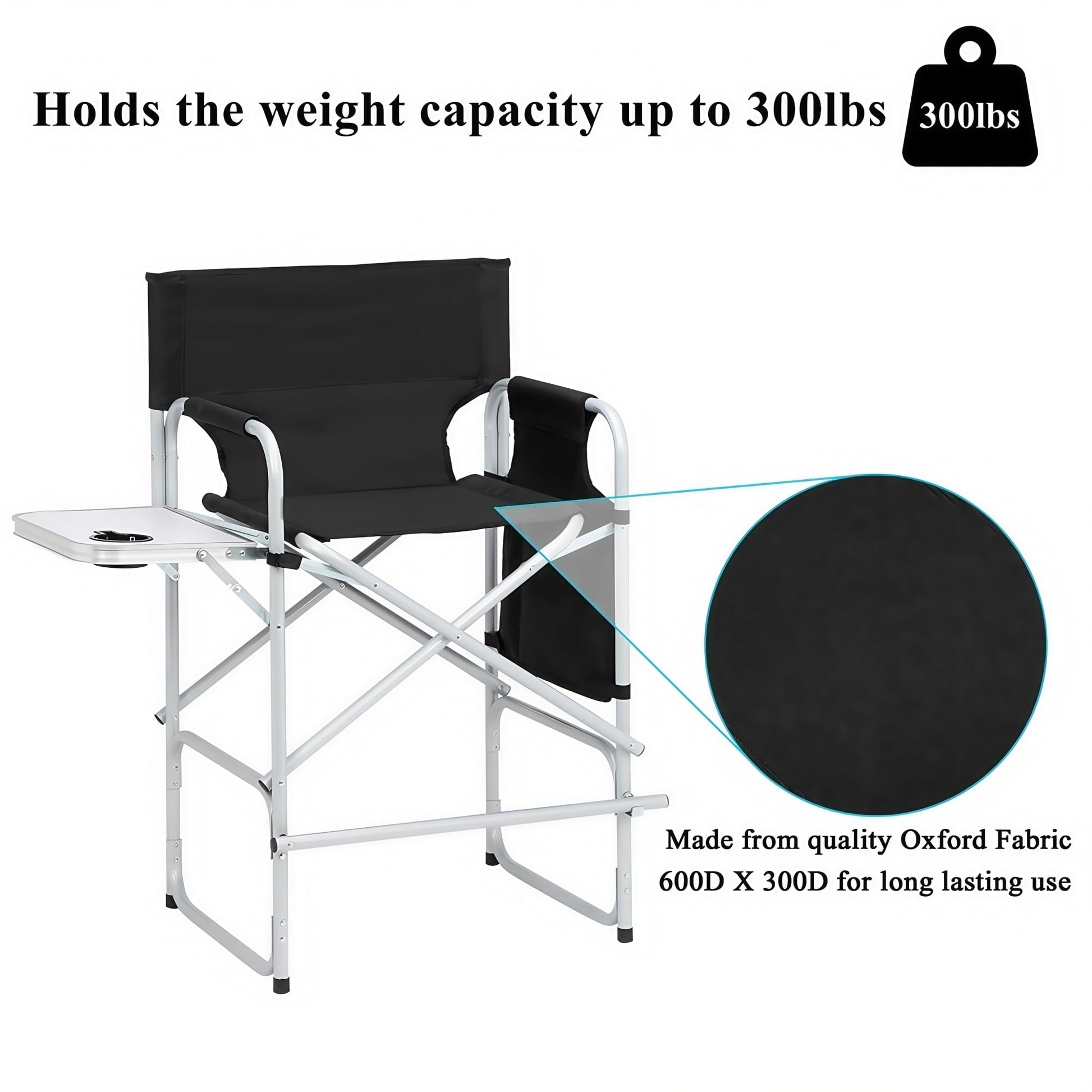 Gundir Tall Director Chair, Adult, Folding Camping Chair with Side Table, Cup Holder and Storage Bags