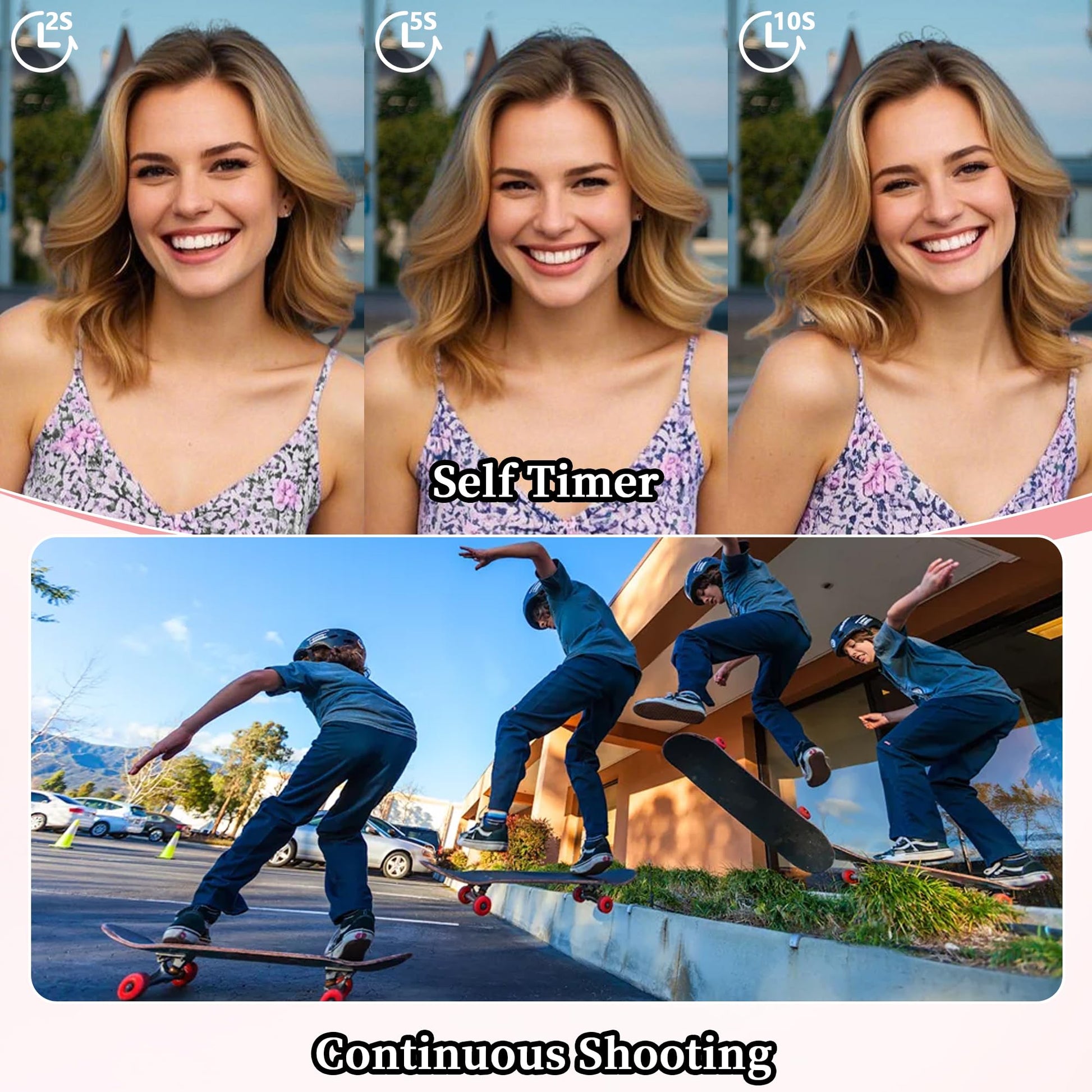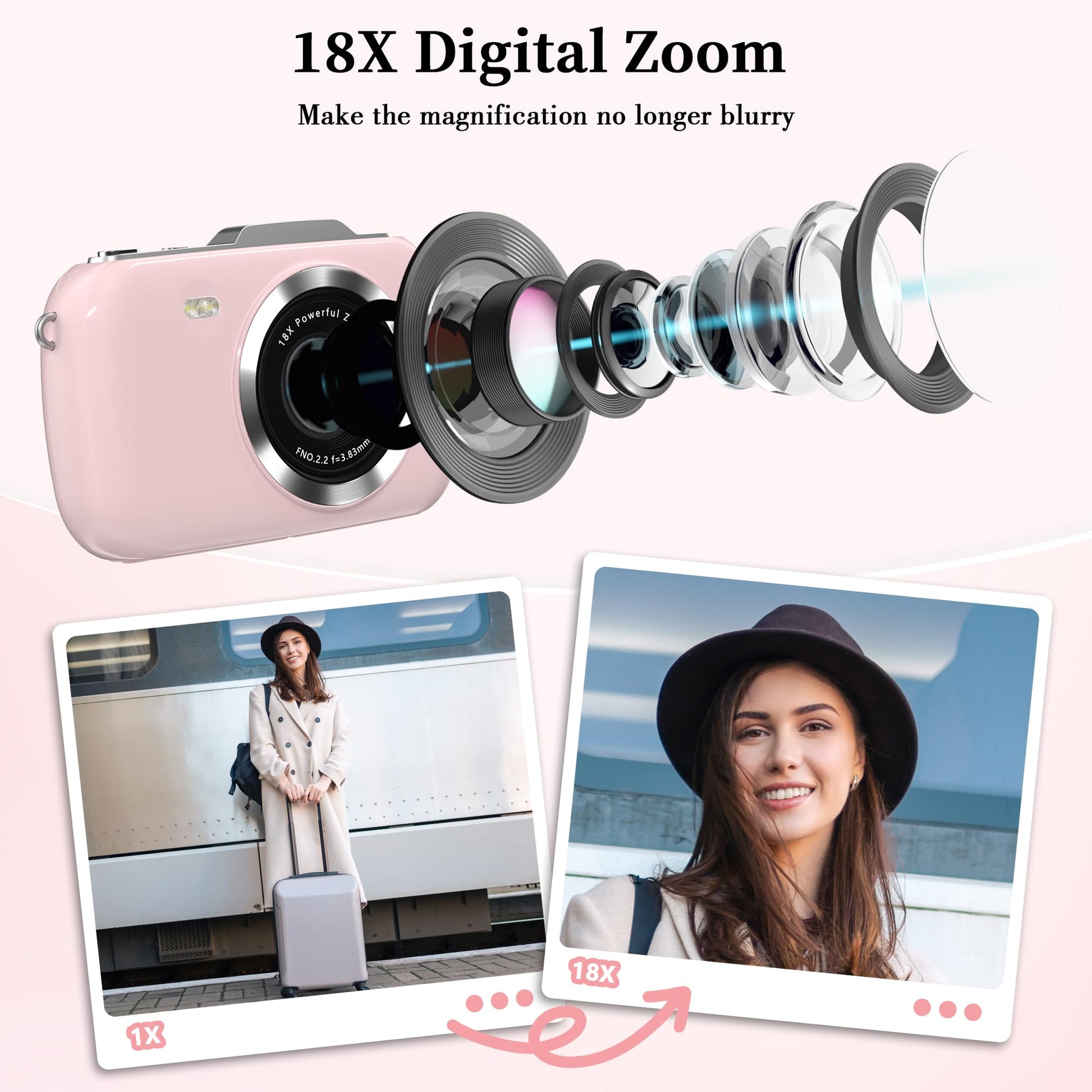 - 4K UHD & 64MP High Resolution: Ultra HD 4K video recording delivers clear details and natural colors, while the 64MP high-resolution photography captures fine textures and rich layers. This digital camera teen is perfect for vloggers, travelers, and content creators to produce sharp and detailed photos and videos with ease.