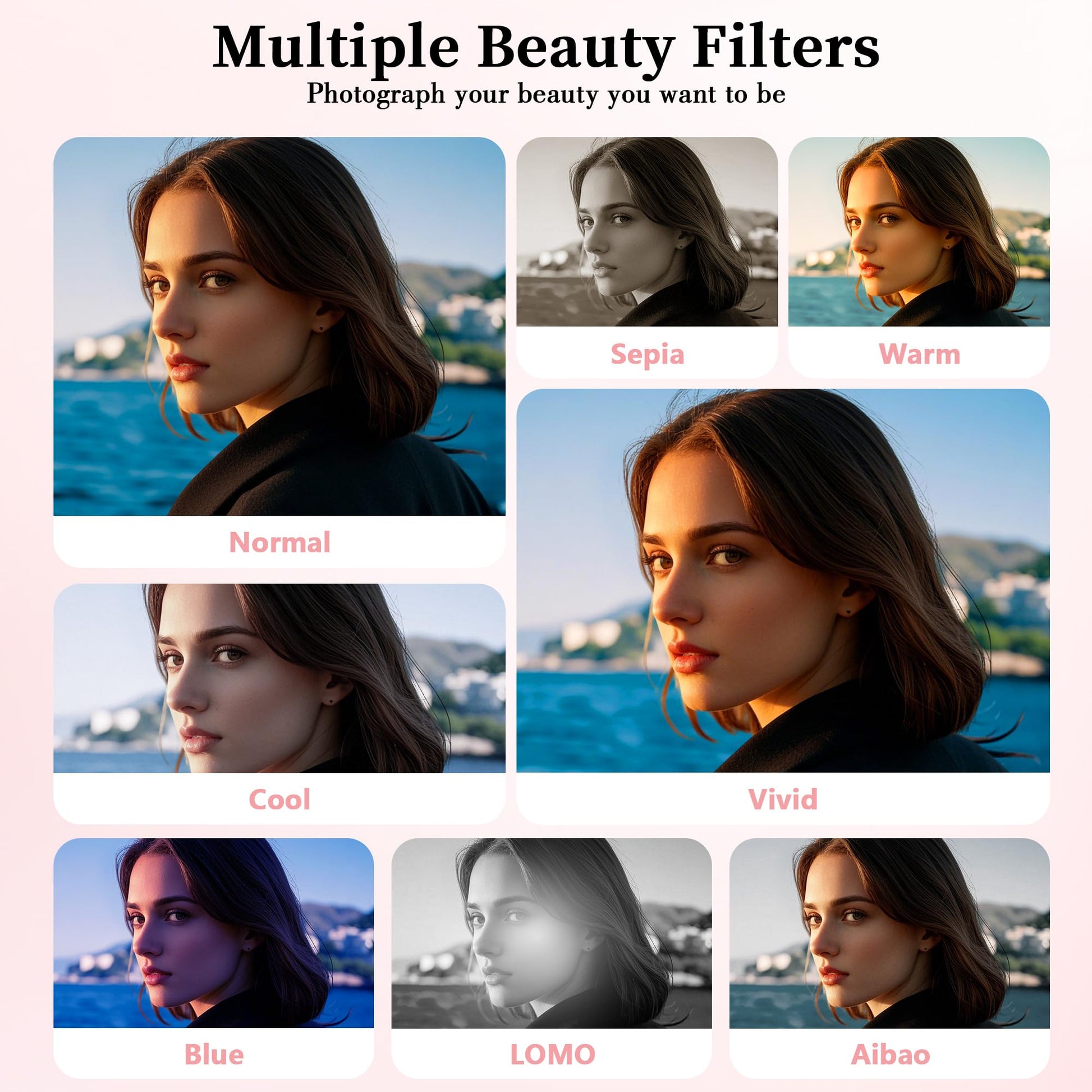 - Multiple Shooting Modes: This compact vlogging camera offers a variety of shooting modes, such as slow motion, continuous shooting, loop recording, timer, and more, to suit all your content creation needs. Additionally, it features 20 unique filters to add creativity to your photos.