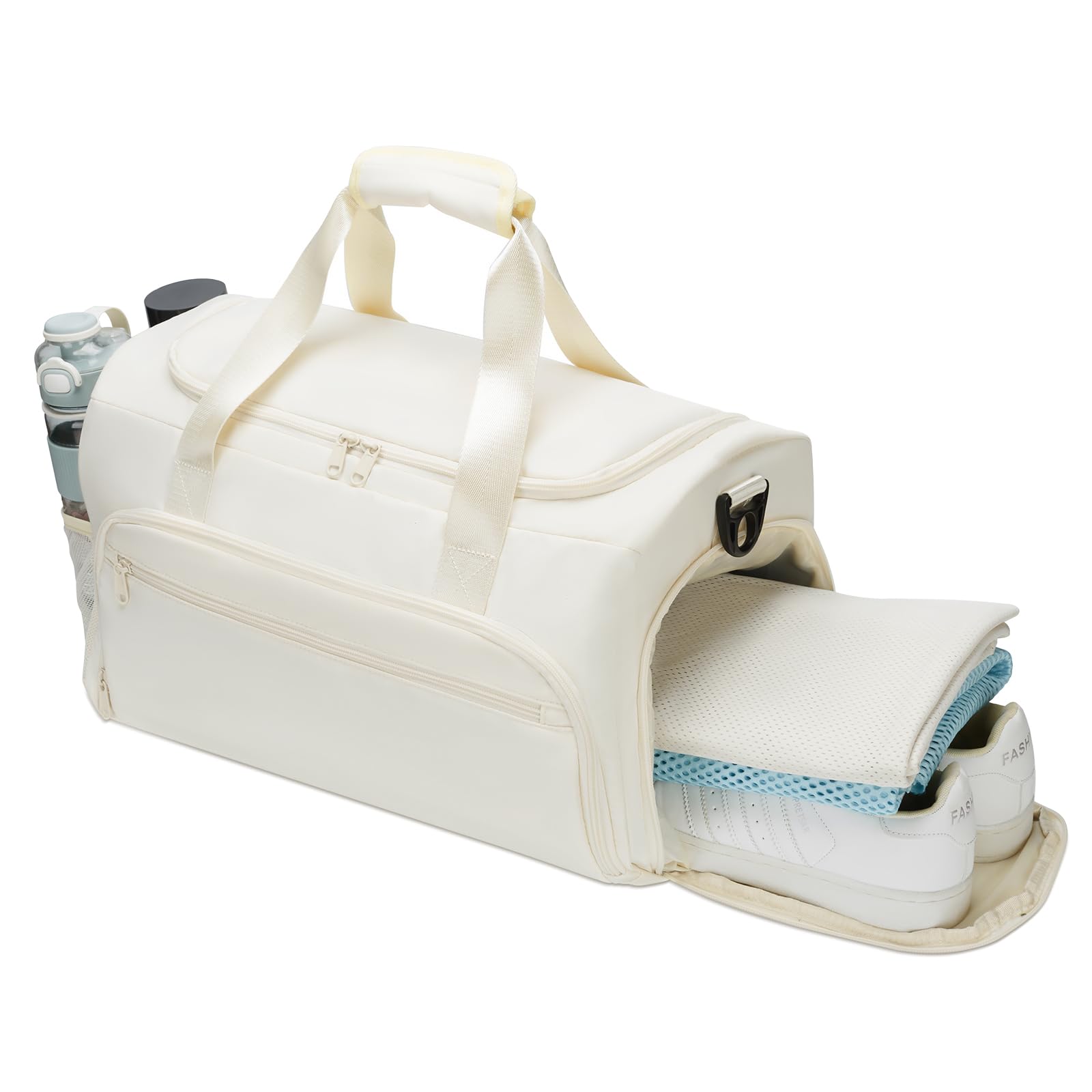 Gym Bag for Women, Small Fitness Workout Sports Bag with Wet Pocket & Shoes Compartment, Water Resistant Overnight Weekender Duffle Bag in Beige