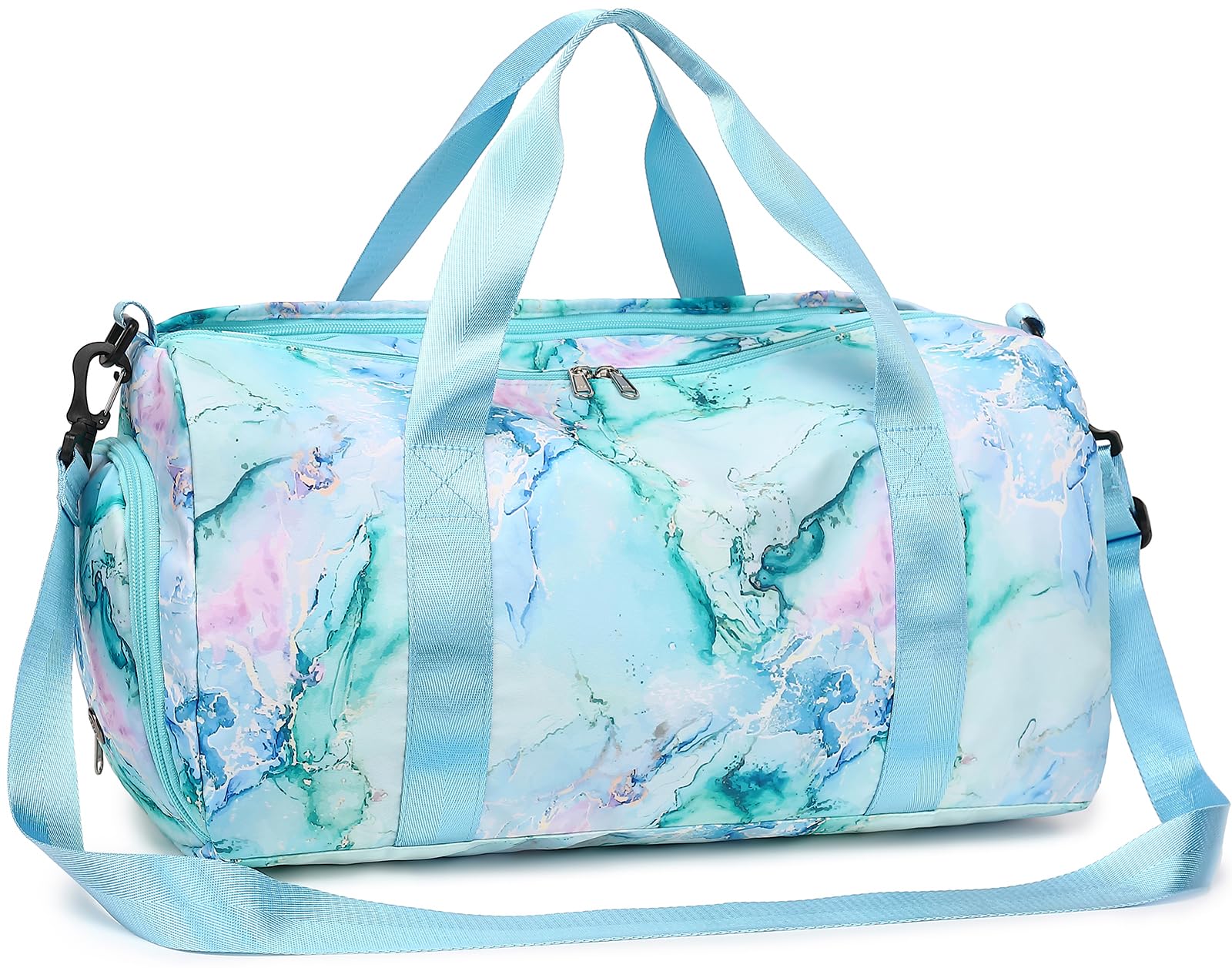 Gym Bag Sports Duffle Bag with Wet Pocket Weekender Overnight Bag with Waterproof Shoe Pouch and Air Hole for Girls Kids Women Travel Foldable Bag