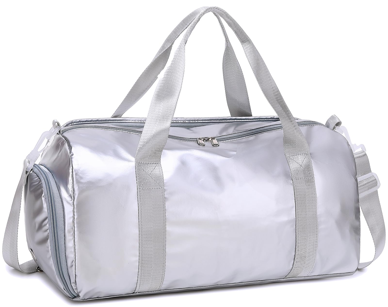 Gym Bag Sports Duffle Bag with Wet Pocket Weekender Overnight Bag with Waterproof Shoe Pouch and Air Hole for Girls Kids Women Travel Foldable Bag