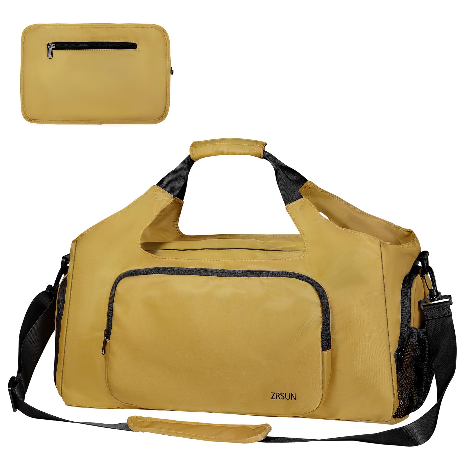 Gym Bags for Men Women, Sports Duffle Bag, Travel Gym Bag with Shoes Compartment and Wet Pocket, Foldable, Lightweight for Travel, Gym, Yoga (Yellow)
