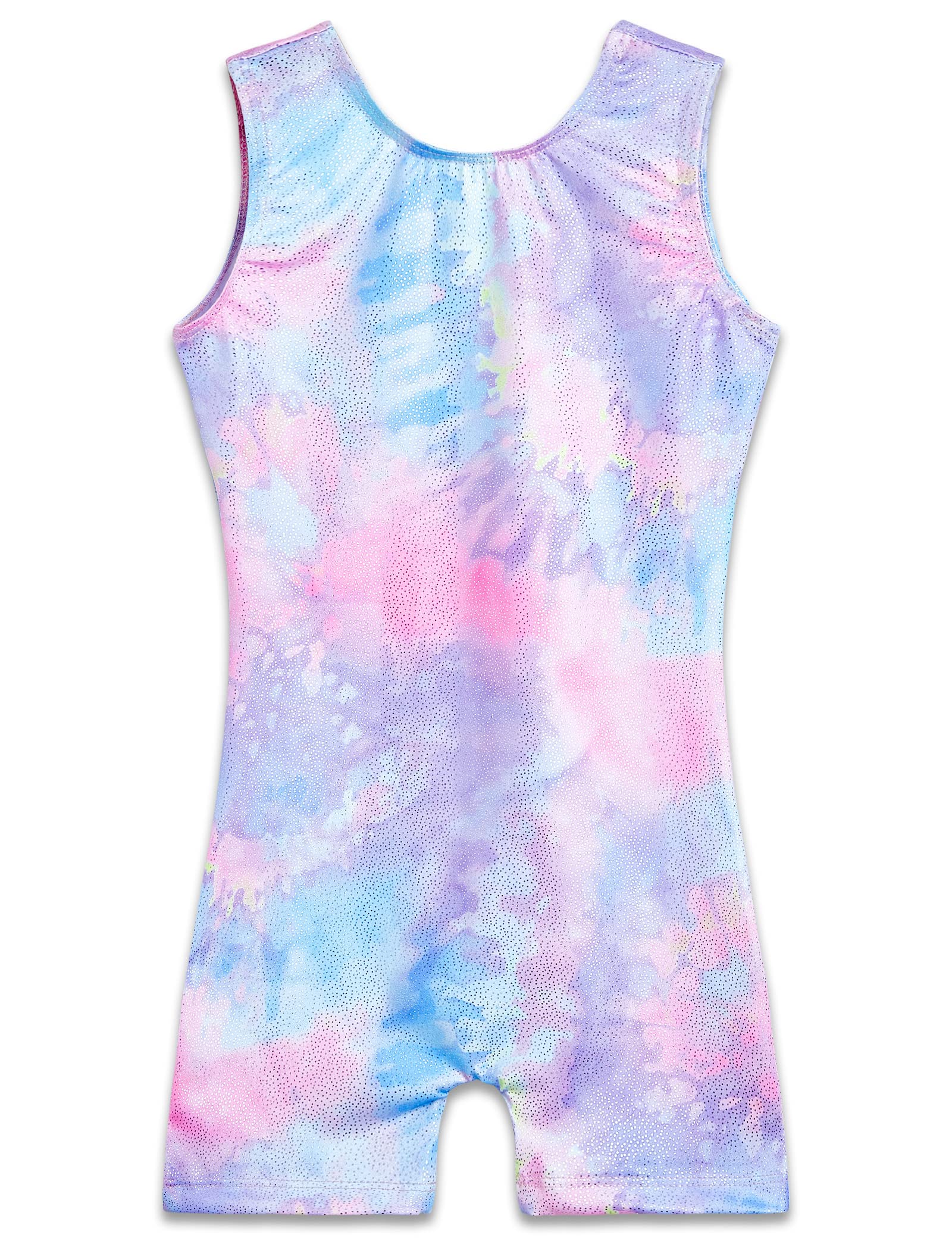 Gymnastics Leotards for Girls 5-6 Years Old Sparkly Purple Tie Dye Biketard with Shorts Tumbling Practicing Unitard